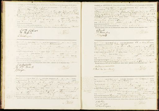 MAIRAE van AMSTERDAM, Eerste Arrondissement, Hoofd-Plaats van het Departement ZUIDERZEE. Den VyfenTwintigsten dag der Maand December van het Jaar Achtienhonderd EEf ten Negen ure, Voor demiddag Acte van Geboorte van Antje Elbers, geboren den zesen Twintigsten dezer des Middags ten Een uren,Dogter van Dirk Elbers van beroep souwbaander en van Meyntje Harmsen van beroep Schoonmaakster Echte Lreden, wonende in de /grosten oostenburger straat No 164 Centon 1 Zijnde dit kind aldaar geboren het Kind is erkend te zijn van het vrouwlijk geslacht Getuigen Willem Wassink oud Vijfen zestig Jaren, van beroep geene wonenden de oostenburgen Agter straat No 65- en Johannes Houthuijsen oud vieren veertig Jaren, van beroep Kruiersknegt wonende in de Kleine oostenburger straat N 63 Op het verzoek aan ons gedaan door voornoemden Vader Zijnde deze Acte na mijne voorlezing geteekend door den vader en de beide Getuigen Bevestigd ingevolge de Wet door mij Ondergeteekende Adjunct-Maire, Ambtenaar van den Burgerlijken Stand. J. Stodshon. Dirk Elbyrs W Wassink J. Hildten 7a J Houthuijsen MAIRIE van AMSTERDAM, Eerste Arrondissement, Hoofd-Plaats van het Departement ZUIDERZEE. De tgten Twintigsten dag der Maard December van het Jaar, Achtienhonderd Elf ten Elf ure, voor demiddag. Acte van Geboorte van Hendrik Bosch, geboren den Zesentwintigsten Dezer des Avonde ten Jren, zoon van Hendrik Bosch van beroep/ Werkman, en van Catharina Harmsen, van beroep oud roestverkopster Echte Lieden wonende in de Kerkstraat bij den Amstel N 26 Canton 3. Zijnde dit kind aldaar geboren, het Kind te erkend te zijn van het Manlijk geslacht Getuigen Philippus Harmsen oud Tweeen dertig Jaren, van beroep wagendrager wonende op de Baangragt bi Louweriergragt N 201 en Tymen de Gotaaff oud zesentwintig Jaren, van beroep Melkverkoper wonende in de Lerkstraat bi de Utrechtenke straat N15 Op het verzoek aan ons gedaan door voornoemden Vder Zijnde deze Acte na mijne voorlezing geteekend door den vader en de beide Getuigen Bevestigd ingevolge de Wet door mij Ondergeteekende Adjunct-Maire, Ambtenaar van den Burgerlijken Stand. J: Hodshon h Bosch J AVMia J: Harmsen P: De GraaW Den Agtentwintigsten dag der Maand December van het Jaar Achtienhonderd Elf ten Een ure voor demiddag Acte van Geboorte van Theodorus Willem Ritzelveldt, geboren den zesen Twintigsten dezer des Avonds ten zeven uren, zoo van Fredrik ritzelveldt van beroep steen zolenmeeter en van Eybertje Mulder van be roep Garen en Lintwinkelierster Echte Lieden wonendein de Korte Koningstraat N 53 Canton '2 zijnde dit kind aldaar geboren het Kind is erkend te zijn van het manlijk geslacht. Getuigen Philippus van den Broek oud 1 Vieren vijftig Jaren, van beroep steen kotenmeeter wonende op de Looiers gragt No 35 en Jarig jarigse oud Negenen vijftig Jaren, van beroep steen helen mieter wonende in de zinkestraat by den Baambrugsteeg N 82 Op het verzoek aan ons gedaan door voornoemden Vader Zijnde deze Acte na mijne voorlezing geteekend door den Vader en de beide Getuigen Bevestigd ingevolge de Wet door mij Ondergeteekende Adjunct-Maire, Ambtenaar van den Burgerlijken Stand. J Hodshon F: Ritzelvelde Ph: V: D: Broek J Hothon J: Jarigse. Den vifen Twintigsten dag der Maand DeCember van het Jaar Achtienhonderd Elf ten Elf ure, Voor demiddag. Acte van Geboorte van Gerrit Dortand „ geboren den Zes en Twintigsten dezer des Avonds ten zeven uren, zoon van Abra ham Dorland van beroep Timmermans knegt en van Hendrika Roesink zonder beroep Echtelieden wonende, op de Groeneburgwal by de Haalstraat N 6 Jan GonN 1 zijnde dit kind aldaar geboren het Kind is erkend te zijn van het Manlijk geslacht. Getuigen DDirk van den Horst oud drieen vijftig Jaren, van beroep Timmermansbaas wonende op heingel by de Geelden ksteegts2en Johann Tikken oud Een en veertig Jaren, van beroep kledermakersknegt wonende onder den Vader Op het verzoek aan ons gedaan door Katziena Anderie Te van beroep vroedvrouw wonende in de der de wetering dwvarstraat N 28 Zijnde deze Acte na mijne voorlezing geteekend door de vroedvrouw en de Eerste Getuigen der lereryn de de tweede Getuigen niet te kunnen schrijven Bevestigd ingevolge de Wet door mij Ondergeteekende Adjunct-Maire, Ambtenaar van den Burgerlijken Stand. J. Hoorhon katriena anderiese J Aronen Dirk van der Horst Goedarkeurd de bijvoeging beide Den Vifentwintigsten dag der Maand December van het Jaar Achtienhonderd Elf ten Tien ure, voor demiddag. Acte van Geboorte van Emanues Abraham Boudhuysen, geboren den Zesen Twintigsten Dezer des Avonds ten zeve uren, zoon van Abraham Pevie Woudhuysen van ber oep Smitsbaas en van Ester Marcus zonde beroep Echte Lieden wonende op de todestroomarkt over de Mooesen Arons Kerk N 33 Canton 1 zynde dit kind aldaar geboren het Kind is erkend te zijn van de Mannelijk geslacht. Getuigen Meijer Levie Loosteijn oud zesen veertig Jaren, van beroep veedrijver, wonende op de Leprosengragt No 2 en Levie Alevander Aarhoort oud AgtenTwintig Jaren, van beroep Vinnenkoper wonende Naastden deClarant N 34 Op het verzoek aan ons gedaan door voornoemde Vader Zijnde deze Atte na hijne voorleging geetend daor noch door den vader noch door de Getuigen- alzo dezelve declarierde uithoofden van den Sabbath niet te kunnen schrijvten Bevestigd ingevolge de Wet door mij Ondergeteekende Adjunct-Maire, Ambtenaar van den Burgerlijken Stand. F Stodshon J Hoesn tkind is door Hendricus Verkloegt bij akte in dat 26 November 1800d dortenz voor den Notaris M drel sbrakam de Chanscpie &H rituigen alhier gepasseerd ver het zijne erkend voorende hetzelve kind als nu by deze den naam van Vndrk Versloegt Ven 1800 & dertig Amsterdam den D0 Novemb van Wenter n Den vyf en twintigsten dag der Maand deCeneber van het Jaar Achtienhonderd Elf ten ttaalf ure, op demiddag. , geboren Acte van Geboorte van Hendrik van Buuren ven den vif en Twintigsten Dezer des va Middags ten drie uren, zoon van Maria binnen Amstelen hoek wapen van Dalftsteeg N 86 Canton 8 Zynde al Elisabeth van Buuren zonder beroe