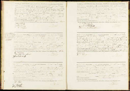 MAIRJE van AMSTERDAM, Eerste Arrondissement, Hoofd-Plaats van het Departement ZUIDERZEE Den vyfen Twintigsten dag der Maand December van het Jaar Achtienhonderd Elf ten Een ure, Na demiddag. Acte van Geboorte van Johandes Gerardus Clercx, geboren den Zevenen Twintigsten dezer des Nachts ten Een uren, zoon van Cornelia Christina Clercx zonder beroep wonende op de steiligeweg N 27- Canton 4. Zijnde dit kind aldaar geboren het Kind is erkend te zijn van het Manlijk geslacht. Getuigen Hendricus Anthonius Clezen oud zes envijftig Jaren, van beroep saalmeester wonende op de Heiligeweg N:o 27 en Doek van Bruggen oud vyf en zeventig Jaren, van beroep schoenmakersknegt wonende slaagte van de Cadijk N 36 Op het verzoek aan ons gedaan door Petzonella Wijnstok van beroep Vroedvrouw wonend in de voelboogstraat No 10 Zijnde deze Acte na mijne voorlezing geteekend door den Vroedvrouw en de beide Getuigen Bevestigd ingevolge de Wet door mij Ondergeteekende Adjunct-Maire, Ambtenaar van den Burgerlijken Stand. S Hoossow LWijnstok H: A: Clercx J AWHon in bruggen MAIRIE van AMSTERDAM, Eerste Arrondissement, Hoofd-Plaats van het Departement ZUIDERZEE. Den Vyfen twintigsten dag der Maand Decmber van het Jaar Achtienhonderd Cof ten Een ure, Na demiddag. Acte van Geboorte van Willem C Atram Timmerman geboren den vyf en Twintigsten Dezer des Nucsts ten half twee uren, zoon van Jan Abtaham Timmerman van beroep Kustkanonnier en van Ptronel la van Walwijk wonende op de Herengragt by de vrouwersgragt N 308 Canton N 4. Echte Lieden zynde dit kind aldaar geboren or het Kind is erkend te zijn van het Manlijk geslacht. Getuigen Willem Abrum van Walwijk oud sen vyftig Jaren, van beroep Kapper wonende in de Heysteeg N 8 en Andreas Christian Atze oud Viftign Jaren, van beroep kledermakersknegt wonende in de Vijselstraat by de Rerengragt N 30 Op het verzoek aan ons gedaan door oornoemde Vider Zijnde deze Acte na mijne voorlezing geteekend door den vader en de beide Getuigen Bevestigd ingevolge de Met door mij Ondergeteekende Adjunct-Maire, Ambtenaar van den Burgerlijken Stand. J Hoosten J: A: Timmerman Wict van Walwyk J: Aatte Andreas Christian Eltre Dit kind is bstuvelyk tusschen Adrianus van Boerkom en Elisabetre Brugge alhier volhokt den e November 1800 Vyf e twintig behoulyk eikerda gewettigd Aanman lyk detD en Agten Twintigste dag der Maand December van het Jaar Achtienhonderd Elf ten Een ure, Na demiddag. mektete van Geboorte van Engeltje Maria Brugge Agten Twintigstten dezer des Morgens ten zes uren, Dogter van Elisa , geboren heth Brugge van beroep lopende met Koopmanschapper wonendt in de balk intoogsteeg N5 Canton 3 zynde dit kind aldaar gebore het Kind is erkend te zijn van het Vrouwelijk geslacht. Getuigen Jan van der Land oud Vieren veertig Jaren, van beroep Groentever koper wonende in de Kalverstraat naart dezoomstert en Gerrit, Verhoef oud drieenvijftig Jaren, van beroep broodbakkersknegt wonende in de Korsjesteeg bij hetsinge L N 23- Op het verzoek aan ons gedaan door Catharina Piron van beroep vrordvrouw wonende in de Halverstraat by de Romskerk N 34: O Zijnde deze Acte na mijne voorlezing geteekend door de Vroedvrouw en de beide Getuigen Bevestigd ingevolge de Wet door mij Ondergeteekende Adjunct-Maire, Ambtenaar van den Burgerlijken Stand. Hodshon C Divon Jan Jan Ver Zand J. Mdsten Gerrit Verhooff 2 Den Agten twintigsten dag der Maand December van het Jaar Achtienhonderd Elf ten Een ure Na demiddag. Acte van Geboorte van Htenderica Hacks P Geboren den Agtentwintigsten dezer des Vergens ten Tien uren, Dagten van Christi aan Hacke van beroep Kapper en van Gerdina deJong zonder beroep Echte Lieden wonende op het Dingel by de peiligeweg N 21 Canton 4. zijnde dit kind aldaar geboren N0 Kind is erkend te zijn van het vrouwelijk geslacht. Getuigen Herman Schlingeman oud Vijf en vijftig Jaren, van beroep kledermakersbaas wonende boven den vader N24 en Adrianus Bernardus Korenbree oud Negen enviftig Jaren, van beroep Paruikenmakersknegt wonende in de wagenstraat bij de Rotermad k N 4 Op het verzoek aamens gedaan door Catharina Piron van beroep vroerdvrouw, wonende in de Katverstraat bij de boomsKerk N 34 Zijnde deze Acte namtijne voorlezing geteekend door de vroedvrouw en de Eerste Getuigen De clarerende de tweede Getuigen niet te kunnen schrijven Bevestigd ingevolge de Wet door mij Ondergeteekende Adjunct-Maire Ambtenaar van den Burgerlijken Stand. J: Hodshon GPWon Herma Schlingemann J: Huston Den Vyfen vintisten dag der Maand Decmbor van het Jaar Achtienhonderd Elf ten Een ure, Na demiddag. Acte van Geboorte van Slotta Kist geboren. den Eeenen Twintigsten dezer des Nachts ten Twaalf uren, Dogter van Willem rist van beroepknegt in een Hoeden winker en van Johanna Meijer van be „roep pottenwinkelierster Echtelieden wonende in de groten oostenburger straat N8 Candon L. Zynde dit Eind aldaar geboren het Kind is erkend te zijn van het Vrouwelijk geslacht. Getuigen Chrisvoffe L Eggette oud Vijfen veertig Jaren, van beroep scheepstimmerman wonende in de Groten nittag „burgesstraat N42 en Andreas Christiaan Ettze oud vyftig Jaren, van beroep kledermakersknegt wonenden de Wielstraat by de Here gragt N 30. Op het verzoek aan ons gedaan door voornoemden vader Zijnde deze Acte na mijne voorlezing geteekend door den Vader ende beide Getuigen Bevestigd ingevolge de Wet door mij Ondergeteekende Adjunct-Maire, Ambtenaar van den Burgerlijken Stand. J. Hodshon. W: Rist J Ab. 1010 C: Eggelte H: C: Eltze Den Vgten twintigsten dag der Maard December van het Jaar Achtienhonderd Elf ten twee ure, Na demiddag Acte van Geboorte van Johanna Cathrina van No, geboren den omtrent een half Jaar geleden des ten uren, van aan hebbende Een hembtje een wytbaaije borstrokje een roit Museline borstichie eenhalv „doekje, twee prutsjes een wit hoedje en witzurkje een bont Catoene Jakje, een niet rokje een paar kougjes een hoitte zinien gevonden alhier by ze Mesjespoort van dit Gadshuis het Kind is, erkend te zijn van het vrouwelijk geslacht. G
