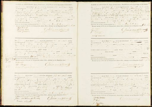 MAIRIE van AMSTERDAM, Eerste Arrondissement, Hoofd-Plaats van het Departement ZUIDERZEL Den Agtienden dag der Maand December van het Jaar Achtienhonderd Elf ten Elf ure voor demidda Acte van Geboorte van Izak Barends, geboren den zestienden dezer des Avonds ten half Negen uren, zoon van Izak Barends van beroep kruyen en van Johanna Maria, van Atken zonder beroep EchteLieden wonende in de Jan de vrie sesteeg op d Bierkade N 12 Canton 2 zynde dit kind aldaar geboren het Kind is erkend te zijn van hetmanljk geslacht. Getuigen Hendrik Wille Vieren dertig Jaren, van beroep souwerma wonende in de sehouten steeg op de bierkade N 2 en Jan Lampen oud vijfenzestig Jaren, van beroep scheepstimmerman wonende naast den Eensten Getuige N Op het verzoek aan ons gedaan door voornoemden Vader Zijnde deze Acte na mijne voorlezing geteekend door den vader ende twee Getuigen Bevestigd ingevolge de Wet door mij Ondergeteekende Adjunct-Maire, Ambtenaar van den Burgerlijken Stand. G. ten Sande Izak Barends Hendrik Wilte Gerrit ten Sande Jan Caripen MAIRIE van AMSTERDAM, Eerste Arrondissement, Hoofd-Plaats van het Departement ZUIDERZEE. Den Agtinoen dag der Maand December van het Jaar Achtienhonderd Elf ten Een ure, na demiddag. Acte van Geboorte van Christiana Douisa Burgers, geboren den Vijftienden dezer desnerde middapten vijf uren, dogter van Jan Burgers van beroep schilders knegt en van Johanna Charlotta Mulder zonder beroep EchteLieden wonende in ee Sint Annestraat nhoek diderstraat N 49 Ganlon 2 zijnde dit kind aldaar geboren het Kind is erkend te zijn van het vrouwlijk geslacht. Getuigen Johannes Bruijn oud Eenendertig Jaren, van beroep schildersbaas wonende in de warmags straat N 12 en Henrich Kulmann oud vijfen twintig Jaren, van beroep schoenmakers knegt wonende naast den Seclarant Op het verzoek aan ons gedaan door voornoemden Vader Zijnde deze Acte na mijne voorlezing geteekend door de vader en twee Getuigen Bevestigd ingevolge de Wet door mij Ondergeteekende Adjunct-Maire, Ambtenaar van den Burgerlijken Stand. G ten Sand Jan Burgers Gerrit ten Sande P Brp Juninis Eulunn Goedgekeurd toe bove en voegevt