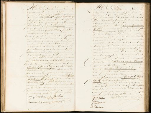 den den Dertienden November Agttien Honderd en Elf des voor de hiddags ten half Eersiur en Verscheer voorun Willem Hendrik Voombergh Adjucit Maire der Stad Aunteidan als Ambtenaar van den Burgerle ken Stand Jacob Paulen wouen de op den hoek van de hruize gragt en Passeerd en straat N:o 649 Cauton, No 3. van beroep Tapper, geadsisteerd doortiee getuigende Eerse Johan nes Paulen, oud vier en dertig Jaren wouende op den hoek van uizegragt en Loogersgragt No 643. van beroep Pajyper de Tweede Hendrik van Ommeren, oud Een en Viftig aren, wonende ten huizen van den Declarant, zonder beroep, dewelva mg Verklaard heeft dat zynnou we Hendrina Muller wonen de den zynen Huizen, zonder beroep Op den Elfden deezen des S Nacht tusschen Een en Twee Uuren is be vaelen van Een zoon, aan dewelke de voornaam gegeven is van Willem Pieter Ingevolge boven staande Verklaringen op hat vezoek van voornoemden vader heb ik deze Arte gesteld, dewelke de voormelde vader ende Twee getuigen nanyze voorleezing indtui hebben getekend J Paulen J Danlen JBavoombergB hendrik van ommeren Hedulden Dertien den NVoveuwber Agttien Honderd en Elf des voor de„ middags quart over Elf huizen Ver scheenvooreny Willem Hendrik Voombergh Adjucct Marie der Stad Aunderdan als Heublenaar van den Burgerlijk en Stand Gerrit Christiaan Tehe, wonende op de Suide gragt ge de Slijpersgang No 167. Cauton N 6. van beroep Kruyers Kuecht, geadsisteerd door Twee getuigen, de Eens te Jansoo„ reuman oud dertig Jaren, wonende naasd den declarant No 564. van beroep schilders Kuecht, de Tweede Johan„ ues Jansen, oud agtendertig Jaren wonende uaart den Detlaraut No 166. van beroep schuitevoerders Kuert deweeke mij verklaard heeft dat zijne vrouwe Maria van de Kaamer wonende den zijnen Huizen, zouder beroep, op den dertienden dezer des Seorgens ten agt uuren is bevallen van Ren zoon aan de welke de voor naamgegeven is van Arent Hen drik Ingevolge bavenstaande verklaring en op het verzoek van voor noemde vader heb ik deze Acte gesteld dewelke de voormelde Vader ende Twee getuigen na mine voorlezing maring hebben geteekend. G C Soue WWHvoombergh J Loorenman J: Jansen