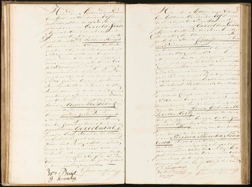 H:Cede den Agttien den Novem ber Agttien Honderd en Elf des voor demiddags ten half Tien uurender scheemvoorig Gerrit ten Lande Adraact Aelire der Stad Muster daum als Aubderiaar van den Bag gerlijken staud Willem Buys wonende in de Kleiue Kattenburg gentraat bij de Eentedivaisstraat N:o 32. Cautton No 1. van beroep Tun meniaus Kriecht, geadsisteerd door Twee getuigen de Eersde Ger rit Kooning oud vijf enzestig Jare wonendein de kleine katenburg gerstraat bij de Eerste divais straat N=o 258. zouder beroep, de Tweede Ian Wynbelt oud vier en vyftig aren wonende ouder den Declarant van beroep sJoiwderman, dewelke mg verklaard heeft vat zine Vrouwe Margaretha Poonkoo neede ten zijn en huizen, zouder beroep op den Zestienden dezerdes Pavouds Den zes uuren is bevallen van Een zoon, aan dewelke de voornaam gegeven is van Gerrebrant, In gevolge bovenstaande Verklaring en op het Verzoek van voornoemde Vader heb ik deze Acte gesteld deweeke de voormelde vader en de rerste getuigen na myne voorlee zingeniet uig hebben geteekend.de ceareerende deTweede getuigen niet te kuunen schrijven, We Buyl Gerrit ten Sande G Scoorng Hleder den Agttienden Novem ber Agttien Honderd en Elf des voor de middags den Tien rlgeen Ver scheenvooring Gerrit ten Sande Adjuriit Mache der Stad Auster. „sam als Auubtenaar van den Bur gerlijken Stand. Christiauus Ioan. nes Nieuwenhuys, wonende op de kloveniersburg wal bij de staal straat No 15 Cauton No 1 van beroep Mediuwe Dooter, geadsisteerd door Twee getuigen, de Eerte Francistus Leitgerus Adoephus Nieuwenhuys oud Negen en Twintig Jaren wonende op de Prunire gragt bij de reguliersgragt N:o 835 van beroep Apothecai, de Twede Marihias Wolteerus Ruijters oud zes en swintig Juren woudende op de hlenr luizel over de Vischmarkt N=o 262. van beroep Tabaks Winkelier dewelke iy verklaard heeft, dat zijne Vrouwe Maria Getruidis Eli Sabeth Mertz. wonende de zijnen huizen, zouder beroep, op den zes„ „tienden dezer des Puiorceus ten Zes uuizen, is bevallen van Eene dochter aan dewelke de voornaam gezeven is van Theodora, Theresia, Fran cisia. Sugevolge bovenstaande Verklaring en op hett verzoek van voornoemden vader heb ik deze sate gesteed dewelke de voormelde vader ende Twee getuigen namyne voor Veeringnnedinig hebben geteekend. CJ: Nieuwenhuys Gerrit ten Vande P:L: A: NieuwenKuijs AW: Ruijters