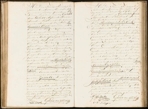 F: Eedeui den Sade an Twintig sten November Agttien Honderden Ee„ des voordemiddags quait voor ie„ ruisen Verscheen voor m Gerrit ten Pan de Adhuuit Marre der Stad Huis Voedaus als Acubtenaar van den Burgerlijken Stand Sa„ lomon Sron wonende op uiler burg over de Kerk N:o 97 Cauton No 1. van beroep schoolonderwijzer, ge adsisteerd door Twee getuigen de Eeute Moses JoSeph oud vier en Vijftig Jaren, wonende op deelen burg overde Kerk No. 17 van beroep beide Kleere koper, de Tweede Tunin Elcas Mossel oud Negen en Veertig Ias en Proonen als boven N:o 95 van beroep Kaute en Mutsen Verkoper dewelke ing verklaard heeft dat zyne vrouwe Merla Seeritz wonende ten zijnen huizen, zonder beroep, op den Eenen Twintig Hte„ dezer des Nadeuiddags ten vier uuren, is bevalle van Eene Dochter aan dewelke devoornaam gege ven is van Zimle. Ingevolge bovenstaande Verklaring en op ze verzoek van voornoemden vader heb ik deze Acte gesteld, deweek de voormelde vader en de Eerste getui gen nn mijne voorleezing met im hebben geteekend, DeClareerendede Twee getuigen geen Hollandschte nu ven schiiven K Aoden Vdenh Gerris ten Sande Heden den Twee en Twintig Rrent November Agttien Honderd en Elf des voordemiddags ten Elf uuren Verscheeuvooring Gerrit ten Sande Adsucct Maire der Stad Amsterdam als Aubtenaar vanden Burgerlijken stand Hendricus Terbeek wonen deinde korte Leijdsche dwaisen hoek Kruisstraat No 27 Cauton N.o. 3. van be¬ roep Coummenis Winkelier, geadsisteerd door Twee getuigen de Eenide Jan Pieter Camman, oud vier en Vijftig Jar en wonende op den hoef van de Prune gragt en Leydsire straat No 694. van beroep Commenys winkelier deTwee Cornelis van Schagen oud Vyf en Twin tig Jaren, wonende op den hoek van de Norde Leijdsche divaisstraat en hruis straat boven N:o 27. van beroep schoen makers kuecht, dewelkaing Ver klaard heeft dat zijne vrouwe Anna Maria Marotski, wonende ten zijnen huuzen, zonder beroep, op den Een en Twintigsten derer des Suror gens ten half zeven uuren, is bevallen van Een zoon aan de welke de voor naam gegeven is van Johannes Josephus. Ingevolge bovenstaa de verklaring en op het Verzoek van voornoemden wader heb ik deze Ace gesteld, dewelke devoormelde vader ende Twee getuigen namyne voor„ leezing intin hebben geteekend. H: ter Beek Gerrit ten Sande P Camman C V Schagen