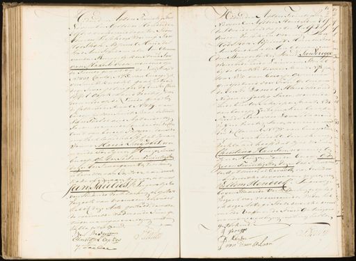van den Agten Twantigsten Neveemberstgttien Houderd en Ell des voordemmiddags ten Tien Keuren Verscheen voor ing Jan Hodshon. Adzuuit Marie der Stad Amsterdam als Aubtenaar van den Burgerlijk en stand. Jan van MaarteVeen, wonende op de Pruizegaagt bij de Leerstraat N: 332. Canto N 75. van beroep zil versuutsknecht, geadsisteerd door Twee getuigen de Eante Chin toffel oephes oud veertig jaren wonende op de Linde grag beij de Cathuiser straat N:o 129. van beroep zilver sunts Baas de Twede Jan Soelee oud Agtendertig Iaren, wonende ouderden Decla rant van beroep Tapper, dewelke mg Verklaard heeeft dat zijne O.6 Vouwe Maria Snyders, wor nende Ten zijnen Huizen, zouder beroep, op den Ses en Twintig sten dezer des Tinorgens ten vier uuren is bevallen van den zoon, aandewel kede voornaam gegeven is van Jan PaulusIngevolge bi ven staande Verklaring en opzet Verzoek van voornoemden vader heb ik deze Acte gesteld, dewelke de voormelde vader ende Twee ge tuigen namyne voorlezing ine mi hebben geteekend. J: Jan Maarsereen J Hoddon Christoffel Oepkes J: toecee 82 83 HEeden den Agter Swouitigsten November Agttien Honderd en Elf. des voordemiddags den Half Ees uuren Verscheen vooriny Pan Hodshon Adjuart Aldire de Stad Aun sterdach als Aubtenaar van den Burgerlijken Stand, Sandereggen wonende inde Lauderie Straat bij de laatste divers straat No 74. Cau. ton N:o 5. van beroep oppennan geadsisteerd door Twee getuigen de Eente Daniel Hausen oud Negen enzestig Jaren, wonende inde buiten Schypper straat N.o 14. N van beroep zeeemakers baas, de Tweede Jan van Domselaar oud vijf en veertig Jaren, wonende waar den declarant N:o 75. van beroepsien ze mennans kuecht, dewelke iy verklaard heeft dat zyne voeude Christina Hausen, wonende ten zijnen Huizen, zouder beroep op den Zes en Twintigsten dezer des Furorgens ten agt uuren is bevallen van Een zoon aandewelke de voornaam gezeven is van Willem Hendrik Ingevolge bovenstaande verklaring en op het Verzoek van voornoemde vader heb ik deze Actegesteld dewelke de voor melde vader ende Twee Getuigen nia mijne voorlezing met ing hebben getlekend. C Veregge J: Hedteon D Sanden van dam be Laar