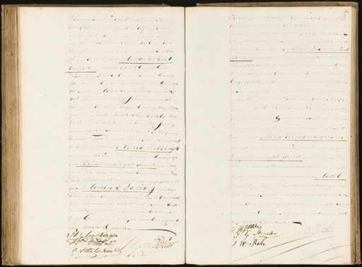 Heden den Zes en twintigste Novem„ ber agttienhonderd en Elf des Nade middags ten drie uuren verscheen voor mmy Jan Hodshon Adjunct Maire der Stad Amsterdam als Ambtenaar van den Burgerlyke Stand, Hendrik Sant bergen, wonende op het Angel by de taamsteeg No. 76 Canton 4 van beroep Winkelier Geadsisteerd door twee Getuigen de Eerste Harmanus Bruntink oud vier en twintig Jaren, wonende boven de declarant, van beroep wagedra ger, de tweede Fredrik TettelsHten drik Jaan oud twee en twintig Jaren wonende Naast de declarant No 70 van beroep Tapper, dewelke minerklaard heef dat zyne vrouw Maria Heddingh wonende ten zyne huize zonder beroep op den Vyfen twintigste dezer, des mor gens ten tien uuren is bevallen van Een zoon aande welke de voornaam gegeven is van Hendrik David, Jngevolge bovenstaande verklaring en ap het verzoek van voornoemde vader heb ik deze acte gesteld, welke de voormelde vader ende twee Getuigen na mijne voorleezing met mi hebben Geteeken. H: Santbergen HS Vantink J: Bontan F: Settel HtendD I Heden den Zeven en twintigste November Agttienhonderd en Elf des morgens ten half, tien uuren verscheen voor mij Jan Hodshous Adjunct Maire der stad Amsterdam als Ambtenaar van den Burgerlijke stand Johan Harmen Jacob Rahe, wonende op de oude waar by de kraak Sluys No. 6 Canton 2 van Piitalie winkelier Geod¬ Viszeerd door Twee Getuigen de Eerste Johan George stember, oud zevenendertig Jaren wonende op de hoek van de Heer en gragt en oude Lelystraat No. 282 van beroep Kok de tweede Jacob Wilhelm Ratié, oud dertig jarin, wonende, by de declarant van beroep koopman, de welke my verklaard heeft dat zyne vrouw Maria Elisabeth Coersen wonende ten zyne huize zonder beroep op den Vier en twintigste dezer des morgens ten zalf zes uuren is, bevallen van Een zoon aan de welke de voornaam gegevenis ven Jacob In gevolge bovenstaande verklaring en op het verzoek van voornoemde vader heb ik dieze acte gesteld, welke de voormelde vader ende twee Getuigen na mine voorleezing met my hebben beteekend. HJkani P: Poeden J. G. Steman J W: Rake