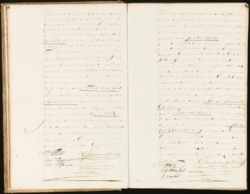 Heden den Negende November agttien honderd en Elf dis voorde middags ten half Enaalf uuren verscheen voor mi Gerrit ten Sande Adjucct Maire der Stad Amsterdam als Ambtenaars van den Burgerlyke stand Jan Horyn, wonende in de wyde stuigs de blomenmarkt No 6 Canton No. 4 van beroep Tapper Geadsisteerd door twee Getuigende Eerste Jan Kuyper, oud Agtenveertig Jaren wonende boven de declarant van beroep kruyer de tweede Hendrik Polsvoort, oud dertig Jaren, wonende in de wyde steeg No. 5 van beroep kruydenier, de welke mi verklaard heeft dat zyne vrouw Frederika Rys wonende ten zyne huize, zonder beroep op den Agste dezer, des Nademiddags ten twee uuren is bevallen van Een zoon aan dewelke de voornaam gegeven is den Dirk Ingevolge bovenstaande verklaring en op het verzoek van voornoemde vader heb 1n deze Acte gesteld, welke de voormelde Vader en de twee Getuigen na mijne voor„ leezing met my hebben Geteekend. Jan Slorijn Gerrit ten Sande Jan Kuyper H Polsvoort Heden den Negende November Agttienhon derd en Elf des Middags ten twaalf uuren ver scheen voor mij Gerrit ten Sande Adjunct Maire derstad Amsterdam als Ambtenaar van den Bur gerlike stand, Jacob Motta, wonende op de baangragt by de spiegelgragt N 33 Canto 3, van beroep Cantoor bediende Geadsisteerd door twee Getuigen de Eerste Jan George Iler Junior, oud vier en twintig Jaren wonende in de Leydsche Kruysstraat No 14 van beroep klerk by de Commissaris van de publike gestigten de tweede, Gerrit Crad„ mer oud agt en twintig Jaren, wonende in de derde weterings dwarsstraat No. 19. van beroep schoenmakersknegt dewelke my verklaard heeft dat zijne vrouw Maria Jannelle Gordyn, wonende ten zyne huize zonderberoep op den Zevende dezer des Nademiddags ten Een uur is bevallen van Eene Dochter aan dewelke de voornaam gegever is van Corne lia Elisabeth Ingevolge vovenstaand Verklaring en op het verzoek van voor „noemde vader heb ik deze acte gesteed Welke de voormelde Order ende twee Getui gen No mijne voorleezing met mi hebben Ge teekend.— „Gerrit ten Sande J Mote J.G. Jler Jun G-. Craamer