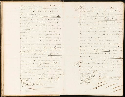 Heden den Zesde November Agttienhon „derd en Elf des morgens ten tien uuren ver„ scheen voor mij Gerrit ten Sande Adjunct Maire der stad Amsterdam als Ambtenaar van den Burgerlijke stand, George Anton Ort Wonende in de 6eere straat No. 10 Canton van beroep kassiersbediende Geadsisteerd door twee Ge„ tuigen de Eerste Ernst Kapmeijer, oud Zes en vyftig Jaren, wonende op de Egelantiers gragt by de Eerste dwarsstraat No. 191 van beroep als boven, de tweede Cornelis Valen„ tin van Bommel, oud Agt en dertig Jaren, wonende in de Lange straat No 68 van beroep mede als boven dewelke my verklaard heeft dat zyjne vrouw Hilletta Geer„ truyda Marugg, wonende ten zyne huize zonder beroep op den Vyfde dezer des voordemiddags quart voor Elf uuren is bevallen van Een zoon aan dewelke de voor naam gegeven is van Johannes Inge volge bovenstaande verklaring en op het ver„ zoek van voornoemde vader heb ik deze acte gesteld, welke de voormelde vader ende twee Getuigen na myne voorleezing met my hebben Geteekend. Gerrit ten Sande G A Ort E. Kapmeijer C J Van Demmel Heden den zesde November Agttienhon„ derd en Elf des morgens quart over tien uuren verscheen voor mij Gerrit ten Sande Adjunct Mai der stad Amsterdam als Ambtenaar van den Bur gerlijke stand, Johan Philip Gind, wonen de in de Ridderstraat No. 57 Canton No. 2. van beroep Tapper Geadsisteerd door twee Getuigen de Eerste, Cornelis Bont, oud Een en dertig Jaren, wonende als boven No. 56 van beroep Chirurgyn, de tweede Johannes Krafte oud twee en dertig Jaren, wonende mede als boven No. 52 van beroep uitdrager, dewelk my verklaard heeft dat zijne vrouw Swaant je kosterd, wonende ten zyne huize zonder beroep op den Vyfde dezer, des Nademidde ten Vier uuren is bevallen van Een zoon aand welke de voornaam gegeven is van Hendrik Ingevolge bovenstaande verklaring en op het Verzoek van voornoemde vader hebie dere Acte gesteld, welke de voormelde vader en de twee Getuigen na mine voorleezing met my hebben Geteekend J: P: Gins Gerrit ten Sande C Bont J Kaft