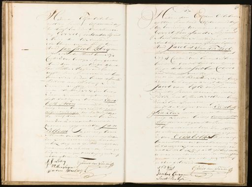Hedender Ellden Octaber agttien honderd rof desmiddags ten half Een uur verschien voor mij Gerrit Tensande Adjunis Maire der stad Amsterdam als Ambtenaar van den Buigerlijken stand Jan Jacob Lobrijwoon in de Noorder straat boven No 4 Cantan B van beroep Acteur geadsi steerd door twee getuigen deEerste Jan Witten slager oud Cweeeu vijftig Jaaren woonende als boven bonen N o74 zonder beroep de Tweede Willem van Walmijk and zeven en viftig Jaaren maande in de Hissteeg N 8 van beroep Kapper imeete mij verklaard heeft dat zijne vrouw Elisa beth Boon mannedetin zijne huize van beroep Naagster onder negenden dezer des nademiddags ten half drie uurenis bevallen van Een zoon aan de welke de voor naam gegevens van Jan Willem Ingenoeg boven staande verstaring en op het de zoe kaan voorwoamde vader heb ik deze acte gesteld melrede voonmelde waderendes mee ge tiugen na myne voorlezing niet mij hebben getekend J: J: Lobry Gerrit ten Sande J: Wittenslager Jn van Walwyk D Heden den Ctden October agttien honderd Elf der middag ten Een uinen veerscheen vaor mij Gerrit sen Sande Adjuncs Marie ders tad Amsterdam als Ambtenaar van den Burgerlijken stand Jacobus Van der Wiel maanende in de Deuling Sraal N M Cantan van beroep kantaar bediende geadsisteerd daart meege tuigen de Een de Jacobus Cosver aud vier en veertig Jaaren waar ende in het Klooster No van berogp kamenbehangen knigt desmeede Jacob van Eijle oud Twee en Twintig Jaaren waonende inde Pieter Jacob Srart No 16 van beroep Winkelier Dewelke mij verklaar heeft dat zijne vrouw Elisabeth Linkleir maarende ten zijne huize zonder beroep onder agtsten dezer des morgens ten Tien uuren is bevallen van Eene Doghter aande welke de voornaam gegeven is van Elisabeth Injevalge bovenstaande verklaaring en of het derzoek van voornoem de vader heb ik deze acte gesteed wilke de vaarmelde vrder en de Tweegetuid gen na mine voorlezing met mij hebben getekend. J VD Wiel Gerrit teen Sande Jacobus Corve V Jacob: Van Eyle