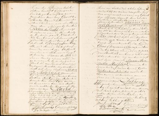 Heden den Vyftienden October Agtien hondert Elf des na de „middags ten half drie uuren verscheen voor mij Gerrit ten Van de Adjunct Maireder stad Amsterdam als Amstenaar van den Burgerlijkenstand Pieter de Vries, wonende op de schans, aan de Romolen by de Leydsche poort N 233 Canton N 3. van beroep Molenaarsknegt geadsisteerd door twee getuigen de Eerste Gerrit op der Heijde, oud drieen dertig Jaren wonende, naast den declarant van beroep Molenaars knegt detweide Frans de Rel ond zes en veertig Jaren, wonende op de schans by de Leydsche Poort N=o van berdes brandhout verkoper dewelke, my verklaard heeft dat zyne Vrouwe Susan Na Maghielse wonende ten zynen huizen zonder beroep Op den, dertienden dezerdes avond ten halftien uuiren is bevallen van een dogter, aan de welke de Voorpaard gegeven is van Maria Ingevolge bovenstaande verklaring en op het verzoek van voornoemde vader heb ik deze acte gesteld welke de voormeld ader, en de teesten getuigen na mine voorlezing, met my hebben getekend de clarenende da tweede getuigen niet te kunnen schrijven L:en de vries Gerrit ter Sande G G den Heijde H Heden den Zestienden October Agtien hondert Elf des voordemiddags, ten half tien uuren verscheen voor mij Gerrit ten Sande Aduinet Maire der Stad Amsterdam als Ambtenaar van den Burgerlijken stand Johannes Brum melkamp wonende op de Jodebreestraat, by de Sint Anthonysluis N 11. Canton N 1. van beroep Tabaks winkelier geadsisteerd door twee getuigende Eerste Pieter Burk oud Agten Twintig Jaren wonende, op de Zwanenburgwal, N 47 van beroep. Linnen winkelier de tweede Elias Brummelkamp, oud twee en dertig Jaren, wonende in de Conter „dwarstraat, No van beroep Tabakswin kelier, dewelke mij verklaard heeft dat zyne Vrouwe Anna Henrietta Hesselink wonende ten zijnen huizen zonder beroep Op den Veertienden dezer des, nachts ten Twee uuren, is bevallen van een zoon aan de welke de Voornaam gegeven is van Anthonije Inrevolge bovenstaande verkte niig en op het verzoek van Worndem den Vader heb ik deze acte gesteld welke de voormelde Vader en de Twee getuigen na mijne Voorlezing met my hebben getekend JBrummelkarmd Gerrit ten Sande Pieter Burk C: Brummelkamp.