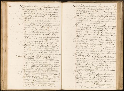 Aalmoezeniers Weishuis der Stad Amsterdam Proces -Verbaal N 11 Litt R: Op heden den Zeventienden October 1811. Savonds, 9½ uur is door Aaltje Mensert aan Hendrik Jtakfort, warnemende de Cindtie van porteer in het Aalmdezenierswees huis dezer stad overgegeven en is in hetzelve ingesomen een kint van het vrouwlyk geslacht oud ge„ „ boven den 29e Mei 1810, aan hebben nte een Hembtje een zwart twalge twet Rokjes een halsdoekje twee Mutsjes een paar kousjes een haar Schoentje voor den zilver Aalti Mendert vonden alhier. op de Prinsegracht bij dit godshuis bij de ververyde Lietde Savondsstegk Uur met di bericht: dit kind is Roomsch gedoopt met de naam van Maria Jansen geboren den 29 Mei 1810, zullende zaandit kind den naam gegeven worden van Haria Jansen waar „van dit Proces- Verbaal, is opgemaakt en door ons het voorschrevene op voor „schreven dag maand en jaar is onder tekend Hendrik Hakfort/ Aaltje Mensert verklaard niet te kunnen schryven was Hendrik Hakfort /wy JG Jacobsen D Regent van het Aalmoezenierswees. uis te Amsterdam Hibovenstaande Poces verbaal Aldus opheden bij mij ondergeschreve Adjunct Maire der Stad Amstterdam als Ambte waar van den Burgerliken stand ingeschre „ven den Agtienden October achttien hondert Elf WH voombergh 2 1 V Aalmoezeniers Weeshuis der z stad Amsterdam Proces-Verbaal No 10 Zitt: S Opheden den Zeventienden October 1811. Favondste 9½ uur is door Mietje van Houten aan Hendrik Hakfort waanne „mende de furctie van portier in het Hal„ „moesseniers weeshuis dezer stad over„ „gegeven, en is in hetzelve ingenomen een kind van het; Vrouwelijk geslactt oud na gissing Acht dagen, aan hebben „de geen klederen, opgebakerd in Luiers een Hembtje, een baaijebarstrokje een Writ kirkje twee rooie Luers een witte Liter twee mutsjes twee vlepjes een halsdoekje, door denzelve sietje van Houten gevonden alhier, op de Prin„ „segracht, bij het Molenpad, Savondste 912 uur met dit bericht verzoeke uit kind te Laten doper, met de naam van Janzie Olienses, Zullende aan lit kind den naam gegeven worden van Janzie OlienseS. waar „van dit proces verbaal is opgemaakt en door ons het voorschrevenen op voorschreven dag, maand en jaar, is ondertekend. Hendrik HaksAt, /wo J: G: Jacobsen- Mietje van Houten Regent van het Dalmoe verklaard niet te „zunders weestus te kunnen schrijven Amsterdam wy Hendrik Stakfort Het bovenstaande proces Verbaal als „dus op heden bij my ondergeschrevene Aamnet Maire der stad Amsterdam als Ambtenaar van den burgerlyken stand ingeschreven den Agtienden, October Achtien hondert JWHvoombergh 2