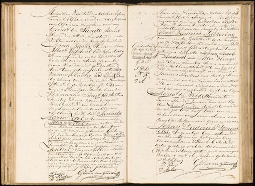 Heden den Negentienden October Agtien hondert, Elf des, voordemiddags, quart over Elf uuren, verscheen voor my Gerrit ten Sande Adjunct Maire der Stad Amsterdam als Ambtenaar van den Burgerlykenstand Anna Busser Huisvrouw van Albert, Ysbrand oud vyf en dertig Jaren wonende in de Kerkstraat by de Leydsche straat N=o van be vroep Vroedvrouw geadsisteerd door twee getuigen de Eerste Har manus Rluijter vad vyf en Zeven „tig Taren, wonende, in de Noorder straat, bij de Vijselgragt N 65. van beroep Aanspreeker, de tweede Harmanus Periet nu Achten Twintig Jaren, wonende op de Vijselgragt N=o van berdep Comme „ nijs winkelier dewelke mi verklaard heeft dat Jannetje Maria Lock Huisvrouw van Pieter Teriet wonende ten huize van haren man in de plantagie op de Middelwegirbinne buiten N, zonder beroep Op den Zeventienden dezer des nademiddags ten vyf uuiven, is bevallen van een zoon aan dewelke de Voornaam gegeven is van Hendrik Ingevolge bovenstaande verklaringen op het verzoek van voor„ noemden vader heb ik deze acte ge „steld welke de Voormelde vroedvrouw in de twee getuigen na mijne Voor„ „dezing met my hebben getekend= : teeh Gerrit ten Sander A budsen H: Slugter Goedgekeurd de door haling Johan Iacob Windisch oud G: F:S: I DL H : A J: A Heden den Negentienden October Agten H hondert Elfdes, Middags ten Twaalfuren verscheen voor mij Gerrit ten Sande Adjunct Maire der Stad Amsterdan als Ambtenaar van den Burgerlyken stand Johan Diederich Leickering wonende in de Vijselstraat bij de her „gragt N 24. Canton N 3. van beroep Bont. werkers baas, geadsisteerd door twee 9 getuigen deeerste Johan Jacob Windisch ond Pieter klinge oud Zes en Twintig Iaren, wonende in de Voetboogstraat, N 6. van beroep Kledermakersknegt de Tweede Jannes Dukes, oud dertig Jaren wonende in de Nieuwe Looierstraat N 6. van beroep schildersknegt de welke my verklaard heeft dat zijne Maria de Wilde Wonende ten zijnen Huize zonder berder Op den zeventienden dezer des nade middags ten half twee uuren is bevallen van een zoon aan dewelke de voornaam gegeven is van Johan Diederich Domeni„ „Cus: Ingevolge bovenstaande verklaring en op het vertoeD van voornoemden vader heb ik deze dete gesteld welke de voormelde vader en de twee getuigen na mine Voorlezing met, my hebben getekend I D Luckering Gerrit ten Sande P: Klunge J: Auker