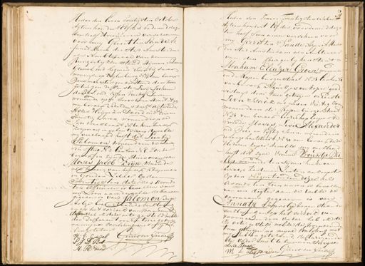 Heden den Een en Twintigsten October Agtien hondert Elf des, nademiddags ten half drieuuen verscheen voor myj Gerrit ten Sande Ad. „Junct Maire der stad Amsterdam als Ambtenaar van der Burgerlijken stand Hijman Saloma Grewel, oud Negen en Twintig saren wonende op wijlenburg N 27. van beroep Jansmeester geadsisteerd door twee getuigen de Eerste Levij Jochem de voos, oud vijfen Veertig Jarer wonende, op de zoode twee straat N 39 van bevoep schildersknegt de tweede Hozes Heijman David oud drie en Twintig Jaren wonende op de Sode breestraat No 60. van beroep koopman, in galanterien dewelke my verklaard heeft dat, Leentje Palomon wonende in de Lasa russteeg N 3. Canton N8. Zonder beroep en zijnde, Huisvrouw van Hoses Jacob Krijn, wonende als boven, van beroep Koopman in Gouden Zilder Op den Twintigsten dezer des Avonds ten Elfuuren is bevallen van een zoon aan derdelke de Vornaan gegeven is van Calomon Inge „volge bovenstaande verklaring en op het verzoek van voorndemben dabartheb ik deze acte gesteld welke den Declarant ende twee getuigen na myne voorlezing metmi heb„ „bengetekend HH: E. vag 5 Gledel Gerrit ten Sande & J D Poot 2 3 Heden den Twee en twintigsten October Agtienhondert Elf, des voordemiddags ten half Tien uuren verscheen voor my Gerrit ten Sande, Ajune Maire der Stad Amsterdam als Ambtenaar van den Burgerlyken stand Abraham Eliazer Groen, wonende in de Rapenburgerstraat N 23 Canton d van bevoep Agurkjes verkoper gead „sisteerd door twee getuigen de Eerste Levie Isaak oud Zes en Veertig aren wonende in de Rapenburgerstraat N 23 van beroep boodschap looper de Tweede Moses LeviAlexander oud Drie en Vyftig Jaren, wonende in de Lange houtstraat N 10 van beroep oude klederen koper dewelke my verklaard heeft dat zyne Vrouwe Vrouwtje Thi„ „lip, wonende ten zijnen huize van beroep kanten en Linten verkoopster Op den Negentienden dezer des Avonds ten tien uuren is bevallen van een dogter aan de welke de voornaam gegeven is van Annatje Ingevolge boven staande verklaring en op het verzoek van voorneeenden vader heb ik de „te acte gesteld, welke de, voornoemd. twee gettuigen na myne voorlezing met my hebben getekend, declarerende de vader niet te kunnen schriven Lvie Isock W L aiezvander serrit ten Sande