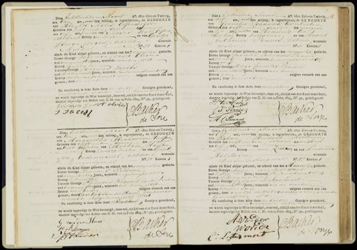 Den Achttienden Maart Ao. 1800 Drie- en-Twintig, ten tien ure, voor den middag, is ingeschreven, de GEBOORTE van Heintje Mozes Ossendrijver Geboren den zestienden dezer de morgens ten vijf ure, Dochter van Moses Wolf Ossen „drijver Beroep veedrijver en van Grietje Simon Degen, Echtelieden wonende No. 28 Kanton 1 Maken zijnde dit Kind aldaar geboren, en erkend van het vrouwelijk geslacht. Eerste Getuige Salomans Laved Olivien oud vierenvyftig Jaren, wonende marken No 32. Beroep souwer Tweede betuige Johannes Jacobs oud Achtentwintig Jaren, wonende Batavierstraat N 19 volgens verzoek aan ons Beroep metzelaarskneeht gedaan, door den vader Na voorlezing is deze Acte door de beide Getuigen geteekend, verklarende de vader niet te kunne schriven en wordt ingevolge de Wet bevestigd, door mij, als Lid van den Raad dezer Stad. daartoe ingevolge het Besluit van Z. M. van 14 Febr. 1823, No. 59, gedelegeerd. Salomon Cavit alvien CBacker I 10Cods de IRE Den Achttienden Maart Ao. 1800 Drie-en-Twintig, A ten Elf ure, voor den middag, is ingeschreven, de GE BOORTE van Cornelia Johanna ter Meulen Geborenden viftienden dezer des mongens ten zes ure Dochter van Hendrik ten Heulen Beroep koopman en van Rachel Anthonia Pennis, Echtelieden, wonende No. 11 Kanton water zijnde dit Kind aldaar geboren, en erkend van het vrouwelijk geslacht. Eerste Getuige Cornelis Johannes Pennis oud dertig Jaren, wonende Keizersgracht N 387 Beroep geen Tweede Getuige Augo Cornelis Pennis oud zevenentwintigJaren, wonende als boven Beroep geen volgens verzoek aan ons gedaan, door den vader Na voorlezing is deze Acte door den vadere Getuigen geteekend, en wordt ingevolge de Wet bevestigd, door mij, als Lid van den Raad dezer Stad, daartoe ingevolge het Besluit van Z. M. van 14 Febr. 1823, No. 59, gedelegeerd. H ter Heude J Backer C: J: Pennis de Jinse H: C Pennis chhtie Maart ten tien ure, voor den middag, is ingeschreven, de GEBOORTE van Margaretha Abrahamina Husson Geboren den viftienden dezer des morgens ten acht ure, Dochter van Abraham Husson van Beroep schoolop zichter en van Griet, „sen oudenwortel, Echteliede wonende Looijersgracht No. 78 Kanton 5 zijnde dit Kind aldaar geboren, en erkend van het vrouwelijk geslacht Eerste Getuige Henricus Netsman oud vierendertig Jaren, wonende angeliersgracht No 1 Beroep Setterzetter Tweede Getuige Philippus Johannes vander Linden oud drieenvyftig Jaren, wonende als boven N196. Beroep aesbover volgens verzoek aan ons gedaan, door Geertragt een der Hans, vroedvrouw wonende Asgeliersgracht No 196 Na voorlezing is deze Acte door de voeddrouw Getuigen geteekend, en wordt ingevolge de Wetbevestigd, door mij, als Lid van den Raad dezer Stad daartoe ingevolge het Besluit van Z. M. van 14 Febr. 1823, No. 59, gedelegeerd. G: van der Hans CBarner H Welrman JVd Eorder deEn Den Achttienden Maart AV. 1800 Drie-en-Twintig, ten Elf ure, voor den middag, is ingeschreven, de GEBOORTE van Johan Hendrik Holsteyjn Geboren den viftienden dezer des middags ten uijfure, van Beroep zocht en van Frederika Holsteijn wonende kloneniersburg wal No. 87 Kanton 1 zijnde dit Kind aldaar geboren, en erkend van het Alauwelijk geslacht. Eerste Getuige Adam van der woude oud zestig Jaren, wonende St Jansstraat No 13 Beroep schoeymaker Tweede Getuige Casper Ligtermoet oud drieenvyftig Jaren, wonende als de moeder T vaete Beroep kleedemaker gedaan, door wijntje de wit, vroedvrouw, wonende Na voorlezing is deze Acte door de beide Getuigen geteekend, verklarende de vroedvrouw niet te kunne schriven en wordt ingevolge de Wet bevestigd, door mij, als Lid van den Raad dezer Stad, daartoe ingevolge het Beluit van Z. M. van 14 Febr. 1823, No. 59, gedelegeerd. A: Van ger CBarner woude de Jonge Lifter moet