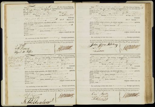 ntwintigsten Maart Ao. 1800 Drie en-Twintig, ten Elf ure, voor den middag, is ingeschreven, de GEBOORTE van Harytje Hojf Geboren den Twintigsten dezer des nachts ten drie ure, Dochter van Lourens Hof van Beroep sjouwer en van Garytje van der Eyk, Echtelieden wonende Noordermarkt /gang No. 4 Kanton 6 zijnde dit Kind aldaar geboren, en erkend van het vruuwelijk geslacht Eerste Getuige Melle Reurs oud vijfentwintig Jaren, wonende kromelleboogsteeg No 36 Beroep zouwer Tweede Getuige wiggert Martens Visser oud dertig Jaren, wonende Droogbak No 15 volgens verzoek aan ons Beroep Zeelnard gedaan, door den vader Na voorlezing is deze Acte door den vader en Getuigen geteekend en wordt ingevolge de Wet bevestigd, door mij, als Lid van den Raad dezer Stad, Paartoe ingevolge het Besluit van Z.M. van 14 Febr. 1823, No. 59, gedelegeerd. E Wrun Attnan Wggert MM WGer Den Twee entwintigsten Maart Ao. 1800 Drie-en-Twintig, ten twaalf ure, op den middag, is ingeschreven, de GE BOORTE H. van Johan George Kohlinger Geboren den negentienden dezer des middag ten Een ure, zoon van Johan George Kohlinger han Beroep kelderknecht en van Johanna Vooys, Echtelieden.— wonend Agelanteerstraat No. 13 Kanton 5 zijnde dit Kind aldaar geboren, en erkend van het mannelijk geslacht. Eerste Getuige Lourens Hoff oud negenentwintig Jaren, wonende noordermarkt No 4 Beroep sjouwer Tweede Getuige Dirk Damman oud zevenentwintig Jaren, wonende keozersgracht No 1 Beroep knuijer) volgens verzoek aan ons gedaan, door den vader Na voorlezing is deze Acte door den vader en Getuigen geteekend, en wordt ingevolge de Wet bevestigd, door mij, als Lid van den Raad dezer Stad, daartoe ingevolge het Besluit van Z. M. van 14 Febr. 1823, No. 59, gedelegeerd. Johan Georg Korlinge L: HJ A deanean Damman ditkind is gewettegd by Huwelik alhier. Vostrokken den 267 Augustus 1800 negen van inter Dtwintig verd Den Tweeentwintigsten Maart Ao. 1800 Drie en-Twintig hier ten Elf ure, voor den middag, is ingeschreven, de GEBOORTE 265 van Pieter Gerrit Samuel Koppen negen: Geboren den twintigsten dezer des avonds ten tien ure, zoon van Pieter Samuel Koppen Beroep veuter en van Johanna Constantia Blekkenhorst, beide wonende Zuikerbakkersteeg /Reg: breedstraat No 14 Kanton zijnde dit Kind aldaar geboren, en erkend van het mannelijk geslacht. Eerste Getuige Joinnes Doolders oud vierentwintig Jaren, wonende st PietersZeeg No 62 Beroep oppoofen. Tweede Getuige Johannes Blekkenhorst oud zesenzeventig Jaren, wonende SpaarpotsZeeg No 15 volgens verzoek aan ons Beroep schoenmaker gedaan, door den vader Na voorlezing is deze Acte doorden vader en Getuigen geteekend. en wordt ingevolge de Wet bevestigd, door mij, als Lid van den Raad dezer Stad, daartoe ingevolge het Besluit van Z. M. van 14 Febr. 1823, No. 59, gedelegeerd. P S Koppen Ab vanmau Jaalder A blekkenhore Den Tweeentwintigsten Maart Ao. 1800 Drie-en-Twintig, ten twaalf ure, op den middag, is ingeschreven, de GEBOORTE- van Willem Cornelis Stants Geboren den twintigsten dezer des avonds ten Elf ure, zoon van Cornelis Stanten Ovan Beroep koopinfactor en van Catha arina de Nagtegaal, Echtelieder wonende heeregracht ber Brouversgracht No. 307 Kanton 4 zijnde dit Kind aldaar geboren, en erkend van het mannelijk geslacht. Eerste Getuige Abraham Stants oud Eenenveertig Jaren, wonende haarl: dyk No 118 Beroep kantoorbediende Tweede Getuige Matthuis Iansz, Arends Zoon oud Eenenveertig Jaren, wonende molenpad No 13 Beroep als koven volgens verzoek aan ons gedaan, door den vader Na voorlezing is deze Acte door den vaderen Getuigen geteekend, en wordt ingevolge de Wet bevestigd, door mij, als Lid van den Raad dezer Stad, daartoe ingevolge het Besuit van Z. M. van 14 Febr. 1823, No. 59, gedelegeerd. Eern:o Ciants A vana Abn J Staent Motth Janir Po