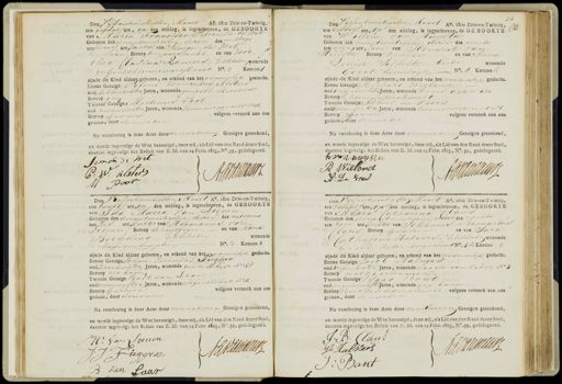 Den Vyfentwintigsten Maart A9. 1800 Drie-en-Twintig, ten twaalf ure, op den middag, is ingeschreven, de GEBOORTE. van Maria Francisca Petronella de Wit Geboren den drieentwintigsten dezer des middags ten twaalf ure, Dochter van Simon de Wit van Beroep kuipersknecht en van Doro„ thea Clasina Ramers, Echtelieden wonende Goudsbloemdwarsstraat No. 8 Kanton 6 zijnde dit Kind aldaar geboren, en erkend van het vrouwelijk geslacht. Eerste Getuige Petrus Wynandus Alsters oud Achtenzestig Jaren, wonende goudsbl: straat N 117 Beroep geen Tweede Getuige Martinus Poor oud vierenveertig Jaren, wonende Brouwersgracht N 156 volgens verzoek aan ons Beroep sjouwer gedaan, door den vader Na voorlezing is deze Acte door den vader en Getuigen geteekend, en wordt ingevolge de Wet bevestigd, door mij, als Lid van den Raad dezer Stad, daartoe ingevolge het Besluit van Z. M. van 14 Febr. 1823, No. 59, gedelegeerd. Aimonde wil C: W: alsters AW Valuauyz Doot M:S Den Vyfentwintigsten Maart Ao. 1800 Drie-en-Twintig, ten twaalf ure, op den middag, is ingeschreven, de GE BOORTE H: van Willem van Huistee Geboren den eenentwintigsten dezer des avonds ten negen ure, zoon van Hendrik Van 1 Huijstee Beroep knuijer en van Anna Louisa Schultz, beide wonende Groot hemelrijk No. 2 Kanton 4 zijnde dit Kind aldaar geboren, en erkend van het mannelijk geslacht. Eerste Getuige Richard Wieland, oud vijfentwintig Jaren, wonende haarl: dik No 330 Beroep schoensiakersknech Tweede Getuige Albert de Vries oud drieendertig Jaren, wonende Brouwersgracht N 6 Beroep sjouwer volgens verzoek aan ons gedaan door den vader Na voorlezing is deze Acte door den vader en Getuigen geteekend, en wordt ingevolge de Wet bevestigd, door mij, als Lid van den Raad dezer Stad, daartoe ingevolge het Besluit van Z. M. van 14 Febr. 1823, No. 59, gedelegeerd. h van huysee R Wielond AWaumus A: De Vries Den VVyfentwintigsten Maart Ao. 1800 Drie en-Twintig ten twaalf ure, op den middag, is ingeschreven, de GEBOORTE van Iela Maria van Loenen Geboren den drieentwintigsten dezer des morgens ten zes ure, Dochter van Hermanus van Zoepen Beroep schuitjager en van Maria Breyding, Echtelieden wonende haarlemmerplein No. 21 Kanton 6 zijnde dit Kind aldaar geboren, en erkend van het vrouwelijk geslacht Eerste Getuige Johan Seremias Liegden oud zesentwintig Jaren, wonende vinkestraat No 105) Beroep als boven Tweede Getuige Bart van Laar oud vierenvijftig Jaren, wonende wagenstraat No 12 volgens verzoek aan ons Beroep sjouwer gedaan, door den vader Na voorlezing is deze Acte door den vader en Getuigen geteekend, en wordt ingevolge de Wet bevestigd, door mij, als Lid van den Raad dezer Stad, daartoe ingevolge het Besluit van Z. M. van 14 Febr. 1823, No. 59, gedelegeerd. H=: Van Soenen AC Valunen HEegven OO B van v Den Vijfentwintigsten Maart Ao. 1800 Die en Twintig, ten tina als ure, op den middag, is ingeschreven, de GEBOORTE van Maria Catharina Claus Geboren den drieenentwintigsten dezer des nachts ten drie ure, Dochter van Johannes Bernardus Claus Beroep sjouwer en van Sara Catharina Halvers, Echtelieden wonende Groote kattenburgerstraat No. 52 Kanton 2 zijnde dit Kind aldaar geboren, en erkend van het vrouwelijk geslacht. Eerste Getuige Jacob Salvers oud vijfendertig Jaren, wonende Laagte van Kadyk No 5 Beroep walkaartenmaker Tweede Getuige Isaac Bant oud negenenvijftigaren, wonende als boven Beroep Boekdrukkers knecht volgens verzoek aan ons gedaan, door den vader Na voorlezing is deze Acte door den vader en Getuigen geteekend en wordt ingevolge de Wet bevestigd, door mij, als Lid van den Raad dezer Stad, daartoe ingevolge het Besluit van Z. M. van 14 Febr. 1823, No. 59, gedelegeerd. J:B: Claut AdJanmen H Hulvers J: Bant