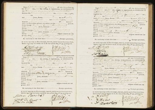 volgens verzoek aan ons gedaan, door Gerardus Hollander, vroedmeester, wonende prinsegracht, No 437 Na voorlezing is deze Acte door de vroedmeesteren Getuigen geteekend en wordt ingevolge de Wet bevestigd, door mij, als Lid van den Raad dezer Stad, daartoe ingevolge het Besluit van Z. M. van 14 Febr. 1823, No. 59, gedelegeerd. G Hollandersp.