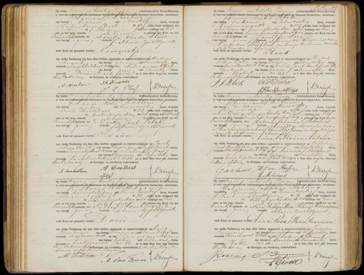 Op heden negen en twintig Juni Achttienhonderd Zes-en-Zeventig, is voor ons ondergeteekende Ambtenaar van den Burgerlijken Stand der Gemeente Amsterdam, verschenen: Zimon Viertier van beroep bediende oud veertig Jaren, wonende rapenburgerstraat No. 91., welke heeft verklaard dat opHeden des voor middags ten zes ure, in het huis, staande als boven is geboren een Kind van het rouwelijke geslacht, uit Saartje, van der Sluis. van beroep geen wonendeals boven zijne Echtgenoot welk Kind zal genaamd worden Kemmetje. van welke Verklaring wij deze Akte hebben opgemaakt in tegenwoordigheid van Andries Brank van beroep geen, oud Eenenveertig Jaren, wonende Langehputstraat N.o 55en van Saloman van Kleef van beroep veen oud zeventig Jaren, wonende Verwerstraat sno15 en is deze Akte door ons, benevens den vader en de Getuigen, na voorlezing onderteekend. S vierlier A Verant Driessen S: V: Klees Op heden negenentwintig Juni Achttienhonderd Zesen-Zeventig is voor ons opdergeteekende Ambtenaar van den Burgerlijken Stand der Gemeente Amsterdam, verschenen. Francisca Tapker Slok. van beroep vroedvrouw oud zesenveertig Jaren, wonende brouwersgracht. No. 125,,welke heeft verklaard dat in haar bijzijn op zeven en twintig dezer des voor middags ten tien ure, in het huis, staande tweede Lindendwursstraat Vo 1, is geboren een kind van het mannelijke geslacht, uit Jannetje Sier van beroep geen worende als boven: No 1: huisvrouw van „ Dirk, van Putten van beroep, werkman, wonende, „ als de moeder, „- afwezend. welk kind zal genaamd worden &klaas. van welke Verklaring wij deze Akte hebben opgemaakt in tegenwoordigheid van Hendrik Willem Halie van beroep wruier oud zesenzestig Jaren, wonende Goudsbloemstraat No 40 en van Cornelis Jacob van Agsendelst, vanwijck van beroep Bruiër oud vierendertig Jaren, wonendemegterstraat No 147. en is deze Akte door ons, benevens de Aangeefster en de Getuigen, na voorlezing onderteekend. H: W: Kalee F.A Blok Driessen Op heden negenentwintig Juni Achttienhonderd zes en-Zeventig is voor ons ondergeteekende Ambtenaar van den Burgerlijken Stand der Gemeente Amsterdam, verschenen: Levie van Rollem van beroep kentirg oud drie enveertig Jaren, wonende Korte Houtstraat No. 22,, welke heeft verklaard dat op achtentwintig dezer des na middags ten half twaalf ure, in het huis, staande Galsbover is geboren een kind van het mannelijke geslacht, uit NaattjeJacob Solak. van beroep geen wonende talibooing zijn Echtgenoot. welk Kind zal genaamd worden Isaac. van welke Verklaring wij deze Akte hebben opgemaakt in tegenwoordigheid van Jacob Sinalhout van beroep koopman oud vijfentwintig Jaren, wonende Zwaninbystraat No 41 en van Salamon Oos van beroep zoopman oud vijfendertig Jaren, wonende hangehoutstraat No 32, en is deze Akte door ons, benevens den vader en de Getuigen, na voorlezing onderteekend J Smalhout L van Kollens Driessen Op heden negen een twintig Juni Achttienhonderd Zes-en-Zeventig is voor ons ondergeteekende Ambtenaar van den Burgerlijken Stand der Gemeente Amsterdam, verschenen: Maria Jacoba de Leeuw van beroep vroedvrouw oud drieenvijftig Jaren, wonende nieuwendijk No 73,, welke heeft verklaard dat in haar bijzijn op Zevenentwintig dezer des na middags ten Elf Jre, in het huis, staande tweede Cgelantiersdijarsstraat No 9, is geboren een kind van het Vrouwelijke geslacht, uit Antonia, Johanna, Melchers, van he geen wonende als boven noge huisvrouw van„ Henricus Jacobus van Rossum, van beroep reiziger, „ wonende als demoeder; „of wezend /1 welk kind zal genaand worden Anna Catharina, Antonia. van welke Verklaring wij deze Akte hebben opgemaakt in tegenwoordigheid van Wilhelm Jacob van Kossam van beroep geen oud zesentestig Jaren, wonende Utrechtsenedwstraat 11091 en van Leonardus Melikers van beroep tapper oud vierenzestig Jaren, wonende tweede Anjeliersdwarsstraat No 24, en is deze Akte door ons, benevens de dangeifiteren de Getuigen, na voorlezing onderteekend J M de Leeuw H J van Rossen Driessen Op heden negen en twintigJuns Achttienhonderd Zes en-Zeventig is voor ons ondergeteekende Ambtenaar van den Burgerlijken Stand der Gemeente Amsterdam, verschenen: Mozes Nitteboon. van beroep diamantslijper oud Een en twintig Jaren, wonende Zwanenburgwal No. 38,, welke heeft verklaard dat opzeven en twintig dezer des na middags ten Vier ure, in het huis, staandeals boven is, geboren een kind van het mannelijke geslacht, uit sther Stamburger. van beroep geen wonende als boven zijne Echtgenoot, welk Kind tal genaamd worden David. van welke Verklaring wij deze Akte hebben opgemaakt in tegenwoordigheid van David Hlamburger van beroep koopmag oud vierenzestig Jaren wonende als de baders No 38, en van Jonas van Reem van beroep kenter oud achtenveertig Jaren, wonende houtsgracht no 50, en is deze Akte door ons, benevens den Vader en Een de Getuigen, na voorlezing onderteekend de Eerste getuige ver„ „klaarde niette kunnen schryven M:r Witteboon J Van Heem Dreesser Op hede zegenentwintig Juni Achttienhonderd Zes-en-zeventig is voor ons ondergeteekende Ambtenaar van den Burgerlijken Stand der Gemeente Amsterdam, verschenen: Johannes, Josephus, Piohling van beroen Koopman oud zevenentwintig Jaren, wonende Haarlemmehouttuinen No. 19., wedet heeft verklaard dat Achtentwintig dezer des namiddags ten zeven Jre, in het huis, staandeals boven v geboren een kind van het Vrouwelijke geslacht, uit Maria Thercha Rosa, Helena Barnasconi„ van beroepgeen wonende als boven zijne Echtgenoot welk Kind zal genaamd worden Eina Rosa, Maria Francisca. van welke Verklaring wij deze Akte hebben opgemaakt in tegenwoordigheid van Jotephus Bornatcoui van beroep commissionaair oud vifenveertig Jaren, wonende Ozvoorburgwal No 235 en van odewyk Hinck van beroep boekhandelaar oud vierenveertig Jaren, wonende, roken No 50 en is deze Akte door ans, benevens den vader en de Getuigen, na voorlezing onderteekend. Kohling P. Bamvocorm Dreessen LGnek