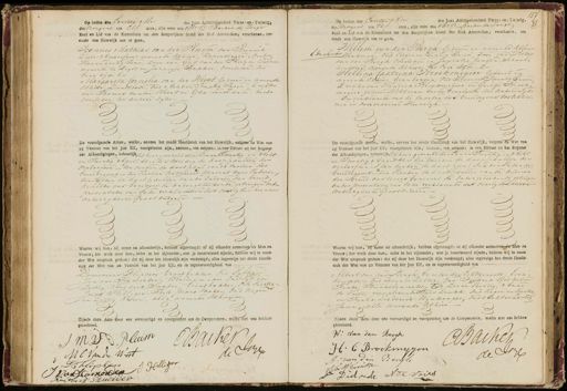 11 — Waarna wij hun, bij name en afzonderlijk, hebben afgevraagd: of zij elkander aannamen als Man en Vrouw; het welk door hun, ieder in het bijzonder, met ja beantwoord zijnde, hebben wij in naam der Wet uitspraak gedaan: dat zij door het Huwelijk zijn vereenigd; alles ingevolge het derde Hoofd- stuk der Wet van 20 Ventose van het jaar Elf, en in tegenwoordigheid van jam ius Flipser t... softrag Jan van Stamerden, Kleerenmaker Oud Vyf en Zestig Feredrik Snider, broodbakker, oud Veertig en Jrio Hilliger, Forte pians maker, oud negen ten Dertig Jaren, alle wonende Alhier Zijnde deze Acte door ons vervaardigd en voorgelezen aan de Comparanten, welke met ons hebben geteekeng. J M Fluin COSuitier A G C vak Wnt llispe Dehlinse Op heden den Eersten Mhtei des Jaars Achttignhonderd Twee-en-Twintig. des morgens ten Elf uren, zijn voor ous Mr C: Briker de Lange Radd en Lid van de Kommissie tot den Burgerlijken Stand der Stad Amsterdam, verschenen, ten einde een Huwelijk aan te gaan, Willem van den Bergh Geboren en wonende alhier Cuurliert Werkman oud negen en Tintig Jaren, zoon van Pieter van den Bergh overleden en Jannetie Jansen, School„ houdster, wonende alhier ter Eene zijde, En Hellena Caatrina Broekmeyier geboren en wonende Alhier, geen beroep, oud zeven en Twintig Jaren Dochter van Hendrik Broekmeijier en Grietje Broek. megier geboren Woltman beide overleden, ter andere zyde En verklaarde ons de moeder des bruidegoms toeteduem„ men in voorschreven Huwelyk. 6 C De voorafgaande Hcten, welke, nevens het zesde Hoofdstuk van het Huwelijk, volgens de Wet van 25 Ventose van het Jaar Elf, voorgelezen zijn, bestaan, ten eersten: in een Extract uit het Register der Afkondigingen, behoorlijk alhier geschied den Een en Twintig en Acht en Twintig Aprillees ten tweeden de doopsedullen den verloofden is ten derden de dooredul van den Vader der bruidegoms ten vierden de doodledullen van de onderen der Kruid ons tevens benevens de ondergeteekende getuigen onder presentatie van Eede verklarende het overlyden harer. wederzydsche Groot onderen.- —— 0 1 6 Waarha wij hun, bij name en afzonderlijk, hebben afgevraagd: of zij elkander aannamen afs Man en Vrouw; het welk door hun, ieder in het bijzonder, met ja beantwoord zijnde, hebben wij in naar der Wet uitspraak gedaan: dat zij door het Huwelijk zijn verëenigd; alles ingevolge het derde Hoofd- stuk der Wet van 20 Ventose van het Jaar Elf, en in tegenwoordigheid van Albert van den Bergh broeder der Echtgenoots, boek„ drukken, oud zeven en Dertig, Jan Fredrik Wilhelm Finke Steinkolenmeter, tyd Zes en Veertig, Anne de Vuels, geempl: aan de Stads Drukk: oud negen en Veertig en Ferant Lrederich, Wynkooper, oudcacht en Zestig Jaren alle wonende alhier Zijnde deze Acte door ons vervaardigd en voorgelezen aan de Comparanten; welke met ons hebben geteekend. W: van den Bergh „ en Twintig Aprillees ten tweeden de doopsedullen den verloofden is ten derden de dooredul van den Vader der bruidegoms ten vierden de doodledullen van de onderen der Kruid ons tevens benevens de ondergeteekende getuigen onder presentatie van Eede verklarende het overlyden harer. wedurzadschetroo te Geven. —— — 1 6 Waarha wij hun, bij name en afzonderlijk, hebben afgevraagd: of zij elkander aannamen afs Man en Vrouw; het welk door hun, ieder in het bijzonder, met ja beantwoord zijnde, hebben wij in naar der Wet uitspraak gedaan: dat zij door het Huwelijk zijn verëenigd; alles ingevolge het derde Hoofd- rink dar UJat van aa Vontnea van hur Jaor Ff, en in tegenwoordigheid van Albert van den Bergh broeder der Echtgenoots, boek„ drukken, oud zeven en Dertig, Jan Fredrik Wilhelm Finke Steinkolenmeter, tyd Zes en Veertig, Anne de Vuels, geempl: aan de Stads Drukk: oud negen en Veertig en Ferant Lrederich, Wynkooper, oudcacht en Zestig Jaren alle wonende alhier z door one varvaardigd en voorgelaven aan de Fammerngten, welke met ons hebben gereekend. H d CS SuVuuel H'E Stroekmyzon de P xx J: van Ten Revgt J.E. W.vinte