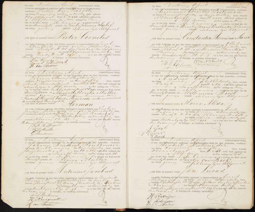 Lasul Velmyt 19 Jbr van Sminen Dit Op heden Dertien Ahril Achttienhonderd Zestig is voor on ondergeteekende Ambtenaar aan den Burgerlijken Stand Dr Stad amsterdam, verschenen Hermanus Gerardus „ Iieleman, van beroep Commissiariuaris oud zesendertig Jaren, wonende „ 10 N Z voorbywel Buurt H, N. 551,, welke heeft verklaard dat Elf dezer des na middags ten drie ure, in het huis, staande als boven is geboren een ind van het Vrouwelyke geslacht, uit Cornelia Joanna Constantia Krame„ van beroep geen wonende als boven: zyne Echtgenoot welk Kind zal genaamd worden Constantia Hermina Maria van welke Verklaring wij deze Akte hebben opgewaakt in tegenwoordigheid van Otto Daniel andertlout van beroep Commissionnair oud vyfendertig Jaren, wonende Roking A. 378.- en van Theodorus Nicoluas Husing van beroep reiziger oud drieenveertig Jaren, wonende mieukwendijk H. en is deze Akte door op, benevens den vaderen de Getuigen, na voorlezing onderteekend OD van de Hout eg : G Vieleman & stesing Op heden Dertien April Achtienhonderd Zertig, is voor onsondergeteekende Ambtenaar van den Burgerlijken Stand der Stad Amsterdam, verschenen: Johanna Maria / Houthuyzen van beroep vroedvrouw oud drie en vijftig Jaren, wonende Eerste Rozendistraat Buurt El. No 81, welke heeft verklaard dat in haar byzyn op JElf dezer des na middags ten Twee ure, in het huis, staande KorteLeydschedustraat CC 210is geboren gen Kind van het Mannelyke geslacht uit Margaretha Cornelia Muller van beroep geen wonende als boven, huisvrouw van Friederich Heinrich David Meyerrose, werkman wonende als de moeder, zynde thans ongesteld welk Kind zal genaamd worden: erman van welke Verklaring wij deze Akte hebben opgemaakt in tegenwoordigheid van Nicolaas Joachem Muller van beroep smid oud vierendertig Jaren, wonende korteleijdsche distraat en van Geert Bonsema te 2ot Wenis dere Ake Janbb, berenen van beroep winkelier oud zesendertig Jaren wonende als boven Cc. 183. de aangeefster en de Getuigen, na voorlezing onderteekend. J M. Houttruyzen 1 G9 W: P Muller Bantemin Op heden Derti April Achttienhonderd Zertig, is voor ons ondergeteekende Ambtenaar van den Burgerlijken stand der Stad Amsterdam, verschenen: Andries eijl van beroep Smid oud acht entwintig Jaren, wonende Kadijk Buurt 1. No. 610, welke heeft verklaard dat op Twaalf dezer des na middags ten vier ure, in het huis, staande als kaan is geboren een Kind van het Vrouwelyke geslacht, uit Willemina Borst van beroep geen wonende als bovenzyne Echtgenoot welk Kind zal genaamd worden Maria Alida. van welke Verklaring wij deze Akte hebben opgemaakt in tegenwoordigheid van Dirk inder van beroep geen oud drieenveertig Jaren, wonende kadyk N. 610. eA van Johannes Bosgh van beroep semd oud zevenenveertig Jaren wonende Wittenbijdykje P. 403. en is deze Akte door ond benevens den Vader en de Getuigen, na voorlezing onderteekend. Geerl G Bnver 1 Achttienhonderd Zestig Op heden,Dertien April is voor ons ondergeteekende Ambtenaar van den Burgerlijken- Stand der Stad Amsterdam, verschenen: ohann Friedrich Finkemeier van beroep ambtenaar oud twee enveertig Jaren, wonende JAnjelierstraat, Buurt OO, No. 305,, welke heeft verklaard dat Twaalf dezer des voor middags ten acht ure, in het huis,, staande als hoven, is geboren een Kind van het Mannelyke geslacht, uit Regina Mulle van beroep geen wonende als boven: zijne Echtgenoot. welk Kind zal genaamd worden Antonius Jacobus. van welke Verklaring wij deze Akte hebben opgemaakt in tegenwoordigheid van Hendrik Rurgrak van beroep ambtenaar oud veertig Jaren wonende elandstraat GG 100, en van Hendrik van Richen van beroep ambtenaar oud Eenendertig Jaren wonende Amstelgrachtje D. 96 en is deze Akte door op, benevens, ten vader en de Getuigen, na voorlezing onderteekend. J.S. Finkemeier H Ruigrrot CG H van Wichen Op heden Dertien taril Achttienhonderd Zestig, is voor onslondergeteekende Ambtenaar van en Burgerlijken Stand der Stad Amsterdam, verschenen Hendrik Rietsnyder van beroep kannemer oud veertig Jaren, wonende ozooorbiwal Buurt A, N 142, welke heeft verklaard dat op Elf dezer des na middags ten zes e, in het huis, staande alsboven is geboren een Kind van het Mannelyke geslacht, uit Evertje van Beek van beroep geen wonende als boven, zyne Echtgenoot welk Kind zal genaamd worden Jan Lucas van welke Verklaring wij deze Akte hebben opgemaakt in tegenwoordigheid van Gerrit Rietsnider van beroep geen oud vierendertig Jaren, wonende schuttingpad 22. 277 en van Peteris Engbert Jacobus van beroep rant bedeende oud dertig Jaren, Vanting wonende Langeteydsche dwstraat CC 339, en is deze Afte door ons, benevens den vader en de Getuigen na voorlezing onderteekend. H: Rietsrar G: Rietsnijder P.E.P. Nanting