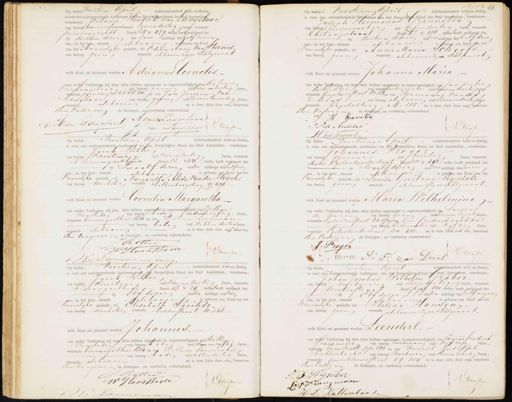 Op heden Veertien Auril Achttienhonderd Acht-en-Zestig, is voor ons ondergeteekende Ambtenaar van den Burgerlijfken Stand der Stad Amsterda verschenen: Antonie Hendrik van Langelaar. van beroep ommissionnairoud vierendertig Jaren, wonende prinsengracht. Buurt BB No. 479, welke heeft verklaard dat op dertien dezer des voor middags ten half zeven ure, in het huis, staande als boven is geboren een Kind van het Mannelijke geslacht, uit Odilia Anna van Steenis. van beroep gun wonende als boven zyne Echtgenoot. welk Kind zal genaamd worden Adrianus Cornelis.- van welke Verklaring wij deze Akte hebben opgemaakt in tegenwoordigheid van Antonie anhangelaar van beroep geen oud Twee enzertig Jaren, wonende printengrachtKk 510. en van Jan Surriën van Langelaar van beroep geen oud zevenentwintig Jaren, wonende als boven en is deze Akte door ons, benevens den vader in de Getuigen, na voorlezing onderteekend, A van Langelaar J H van Danselaar. J. van Lingelaar VViessen Op heden Veertien Ahril Achttienhonderd Achtten-zestig is voor ons ondergeteekende tambtenaar van den Burgerlnhen Stand der Stad Amterdam, verschenen: Joseph Hermanus Franneria van beroep hoedenmaker oud vijfendertig Jaren, wonende betangestraat Burrt K. No. 136, welke heeft verklaard dat op dertien dezer de voor middags ten half drie are, in het huis, staande afsbader is geboren een kind van het Vrouwelyke geslacht, uit Anna Maria Schoots. van beroep gien wonende als bovenszyne Echtgenoot welk Kind zal genaamd worden Johanna Maria van welke Verklaring wij deze Akte hebben opgeplaakt in tegenwoordigheid van Jan Pieter de Kidder van beroepoedenmaker oud tweeenveertig Jaren, wonende Cnjeliersstraat Oo 163en van Hermanus van der Maas van beroep als boven oud zevenendertig Jaren wonende Kapelssteeg M. 185, en is deze Akte door ons, betevens den Vaderen de Getuigen, na voorlezing onderteekend JH. Grametiel J P de Rietder Driessen Op heden Veertien April Achttienhonderd Acht-en-Zestig is voor ons ondergeteekende Ambtenaar van den Burgerlijken Stand der Stad Amsterdam, verschenen: Jacob Kitter van beroep strecteur oud vierenzestig Jaren, wonende binnen garthuus Buurt 13 N 34., welke heeft verklaard dat op Twaalf dezer desa middags ten Kalfvier Jare, in het huis, staandeals boven is geboren een kind van het Vrouwelyke geslacht, uit Margaretha Alida van der Heijde, van beroep werkster wonende halkenhoogsteeg Y 499. welk Kind zal genaamd worden Cornelia Margaretha van welke Verklaring wij deze Akte hebben opgemaakt in tegenwoordigheid van Willijn Honstede van beroep aden oud drieenvyftig Jaren wonende binnen gasthuis B34 en van Willem Lannensard van beroep bode oud achtendertig Jaren, wonende als baaen. en is deze Akte door ons, benevens den Aangever en de Getuigen, na voorlezing onderteekend. Retter W Honstede Dessen Op heden veertien April Achttienhonderd Achten-zestig is voor ons ondergeteekende Ambtenaar van den Burgerlijken Stand der Stad Amsterdam, verschenen: Johannes Froger van beroep graveur oud veertig Jaren, wonende derde Egelantiersdustraat Huurt 111 No. 392, welke heeft verklaard dat op Twaalf dezer des voormiddags ten zeven ne, in het huis, staandealsboorn is geboren een Kind van het vrouwelijke geslacht, uit Louisa Geertrui Reinicke van beroep geen wonende /als bovenszyne echtgenoot. welk Kind zal genaamd worden Maria Wilhelmina van welke Verklaring wij deze Akte hebben opgemaakt in tegenwoordigheid van Laurens de warng van beroep geen oud zevenen twenti Jaren, wonende Egelautiersstraat Nn 187en van drie frederik van Dziel van beroep kastenmaker oud vijftig Jaren wonende Cyilantierskwstraat Nn 455.— en is deze Akte door ons, benevens den vader en de Getuigen, na voorlezing onderteekend. J: Froger De Warm A: F: van Driek iensen Op heden Veertien April Achttienhonderd Achten-zestig, is voor ons ondergeteekende Ambtenaar van den Burgerlijken Stand der Stad Amsterdam, verschenen Jacob Techter buinen gasthuis on vier enzestig Jaren, worend van beroop directeur Buart B. No 34., welke heeft verklaard da op Elf dezer des na middags ten vier Jare, in het huis, staande Jalsboven, is geboren een Kind van het Mannelike geslacht, uit Elisabeth Suiker. van beroep werkster wonende Ridderstraat N. 258.- welk Kind zal genaamd worden Johannes. van welke Verklaring wij deze Akte hebben opgeslaakt in tegenwoordigheid van Willin Hondeden van beroep bade oud drieenvyftig Jaren wonende binnen garthuis 1334, en van Willem Lonnembe van beroep baden oud achtendertig Jaren, wonende als boven. en is deze Akte door ons benevens den dangwer en de Getuigen, na voorlezing onderteekend. Vittie W Hamstede Diessen. Op heden Veertien Cpril Achtienhonderd Achten-Zestig, is voor ons ondergeteekende Ambtenaar van den Burgerijken Stand der Stad Amsterdam, verschenen Johan Jacobus Wilhelm Graber van beroep merkman oud zesendertig Jaren, wonende Werterstraat Buurt 1pf. 500, welke heeft verklaard dat Elf dezer des na middags ten halfnegen ure, in het huis, staande alpboder is geboren een kind van het annelyke geslacht, uit Helena Hansen van beroep geen wonende als bovenzine Echtgenoot welk Kind zal genaamd worden Leendert. van welke Verklaring wij deze Akte hebben opgemaakt in tegenwoordigheid van lonrad friedrick Fransineur van beroep werkman oud vijftig Jaren, wonende boomstraat pp, 540, en van Heinrich zudalph Kallenbach van beroep werkman oud drieentwintig Jaren, wonende goudsbloemsstraat 99 354. en is deze Akte door ons, benevens den vader en de Getuigen, na voorlezing onderteekend, J. I W: Gräber Diier ser L:F Fransmmm H L Kallenbuet