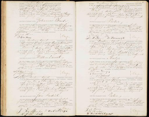 Op heden veertien April Achttienhonderd Acht-en-Zestig is voor ons ondergeteekende Ambtenaar van den Burgerlijken Stand der Stad Amsterdam, verschenen: Josephus Godaars. van beroep aanspreker oud achtendertig Jaren, wonende bloemgracht, Buurt 272 No 54, welke heeft verklaard dat op dertien dezer des voor middags ten vier ure, in het huis, staande als boden, is geboren een Kind van het nannelijke geslacht, uit Helena Hendrica de Haas.- van beroep geen wonende als boven zyne Echtgenoot. welk Kind zal genaamd worden Johannes Petrus van welke Verklaring wij deze Akte hebben opgemaakt in tegenwoordigheid van Gerrit Jarriaan de Haas van beroep kanspreker oud achtenvyftig Jaren wonende Spinhuirsteeg 13209- en van Johannes Hoelof de Haas van beroep schilder oud dertig Jaren, „ wonende als boven B 209 en is deze Akte door ons, benevens dep vadi „Geraart de Getuigen, na voorlezing onderteekend. J de Haar Diessen I B de Haas Voog 52 Op heden Veertien April Achttienhonderd Achtten-zestig, is voor ons ondergeteekende, Ambtenaar van den Iugerlijken Staad der Stad Amsterdam, verschenen. Afartinus Verschoor van beroep scheepstimmerman oud vifendertig Jaren, wonende Kadyk Buurt N. No. 555, welke heeft verklaard dat op dertiendezer deoormiddags ten vier ure, in het huis, staande als boven is geboren een kind van het Mannelijke geslacht, uit Johanna Maria van Daten van beroep geen wonende als boven zyne Echtgenoot welk Kind zal genaamd worden Pieker van welke Verklaring wij deze Akte hebben opgemaakt in tegenwoordigheid van pieter Verschoor van beroep timmerman oud drigentwintig Jaren wonende Kadyk U555.- en van Willem Vrouwik van beroep als hoven oud vyftig Jaren wonende Mittenbystraat P. Zog, en is deze Akte door ons, benevens den Vaderin de Getuigen, na voorlezing onderteekend, M Verschoo „ Driessen Pieter Vershoor. W Kromwijk Op heden Veertien April Achttienhonderd Acht-en-Zestig, is voor ons ondergeteekende Ombtenaar van den Burgerlijken Stand der Stad Amsterdam, verschenen: Henricus Herdinandus Baerselman, van beroep Commissiannair oud zesendertig Jaren, wonende damrak Buurt Z. No 175, welke heeft verklaard dat op dertien dezer Gev oor middags tehalftien ure, in het huis, staande als boven 2 geboren een kind van het Mannelike geslacht, uit Sophia Emma Pieterse. van beroep geen fonende als bovens zijne Echtgenoot. welk Kind zal genaamd worden Willem Daniël. van welke Verklaring wij deze Akte hebben opgemaakt in tegenwoordigheid van Willem Daniël Bacrtelman van beroep aanspreker oud achtenvijftig Jaren, wonende prinsengracht Gr a en van Jan Janten van beroep kantoorbediende oud zevenendertig Jaren, wonende rozengracht D2 418. en is deze Akte door ons, benevens den vader in de Getuigen, na voorlezing onderteekend, H Baerselman Driessen W:t: Baertelma Jaldm Op heden Veertien thril Achttienhonderd Achten-zestig, is voor ons ondergeteekende Ambtenaar van den Burgerlijken Stand der Stad Amsterdam, verschenen: Jan, Hermanus van Dongen. van beroep schilder oud negenentwinttigsJaren, wonende Jhoomstraat Buurt 7p No. 583, welke heeft verklaard dat op Elf dezer des na middags ten negen jre; in het huig, staande als boven is geboren een Kind van het rouwelyke geslacht, uit Antje Cykelboom van beroepgeen wonende talikjoven: zijne Echtgenoot welk Kind zal genaamd worden Antie¬ van welke Verklaring wij deze Akte hebben opgemaakt in tegenwoordigheid van Christiaan Groenemeijer, van beroep barbur oud achtenzestig Jaren, wonende Aujelierkdwstraat 76, en van Willim Lastabend van beroep schilder oud drie en viftig Jaren wonende Goadsbloemsstraat 99 443 en is deze Akte door ons benevens den vaderen de Getuigen, na voorlezing onderteekend, J H van Donge C: Groenemeijer Driessen Pastabend Op heden Veertien April Achttienhonderd Achten-Zeetig, is voor ons ondergeteekende Ambtenaar van Aan Dargerijken Stand der Stad Amsterdam, verschenen Jan ter Mieulen van beroep zulenmaker oud wwee en dertig Jaren, wonende derde Egelantiersdastraat Buurt M. No 389, welke heeft verklaard dat op Elf dezer des na middags ter acht ure, in het huig, staande Gglboogen. is geboren gen Kind van het mannelyke geslacht, uit Anna Egberdina Dierzo. van beroep geen wonende als boven zijne Echtgenoot welk Kind zal genaamd worden Jan Fredrik. van welke verklaring wij de Akte hebben opgemaakt in tegenwoordigheid van Hendrik Johanfredrik Diot van beroep zevenmaker oud dertig Jaren, wonende als de ouders Nn 387, en van Jacob van Oostdaan van beroep als boven, oud vierenviftig Jaren wonende Kinkerstraat Nu 423 en is deze Akte door oug, benevens den vader in de Getuigen, na voorlezing onderteekend. Driesten J. Ter Menlen J: Vabostreeg J J Dierz Op heden Veertien taril Achttienhonderd Acht-en-Zestig is voor ons ondergeteekende Ambtenaar van den Burgerlijken Stand der Stad Amsterdam, verschenen Jacob de Vries van beroep timmerman vierentwintig Jaren, wonende actgentaad. Buurt ZZ, No. 80,, welke heeft verklaard, dat op dertien dezer des na middags ten Elf ure, in het huis, staande Valsbovm is geboren een kind van het mannelijke geslacht, uit Christina Antonia Harmans van berep geen wonende als boven&zine Echtgenoot welk kind zal genaamd worden Pieter van welke Verklaring wij deze Akte hebben opgemaakt in tegenwoordigheid van Hendrik Kerstuis. van beroep voerman oud drieenviftig Jaren, wonende brouwerigracht ss. en van Hermanus Kammelkamp van beroep voerman oud achtendertig Jaren, wonende Simallepadrgracht N4 845, en is deze Akte door ons, behevens den vader en de Getuigen, na voorlezing onderteekend. Jok Vries 7 Driessen H Kerstui H Rammelkamp