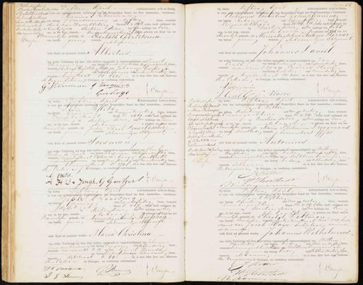 Dit kindig door Klaas ten Heuvel en Elisabeth Gerritsma bij huwelyk, alhier op heden voltrokken voor het hunne erkend.— Amsterdam 26 Mei in 1800 negen en Zestig DDicessen. 5 elensp heden Vijftien April Achttienhonderd Achten-Zestig, (smas voor ons ondergeteekende Ambtenaar van den Burgerlijken Stand der Stad Amsterdam, verschenen: inop Gesina 1 Clieman voor van beroep vroedvrouw oud vyftig Jaren, wonende — dirk van Hasseltattig Buurt H, No. 5198, welke heeft verklaard dat en haar bijrijnop dertien dezer des na middags ten vier ure, in het huis, staande Oudenbrugsttug & 1093 geboren een kind van het hannelijke geslacht, uit Elisabeth Gerritsma. van beroop geen wonende als hoven welk Kind zal genaamd worden Albertus van welke Verklaring wij deze Akte hebben opgemaakt in tegenwoordigheid van Gerrit Joogeweg van beroep handenmaker oud negenenveertig aren, wonende dirk van Hasseltsteeg Hl59den van Johannes Geerlingss. van beroep behanger oud zevenentwintig Jaren wonende uinstraat 60 235. en is deze Akte door ons benevens de kangertster en e Getuigen, na voorlezing onderteekend. G Jinman G Hoogen ex Driessen Guviling Ivog 53 Op heden Vijftien Ahril, Achttienhonderd Acht en-Zestig, is voor oi ondergettekende Ambtenaar van den Burgerlijken Stand der Stad Amsterdam verschenen: Antonius Cornelius Lchenpfenning. van beroep behanger oud zesendertig Jaren, wonende Kuipert achterpad Buurt WW. 211 welke heeft verklaard dat veertiendezer des na middags ten acht ure, in het huig, staande als boven is geboren een zind van het Mannelyke geslacht, uit Maria Magdalena Antonia Kerner van beroep gien wonende als boven: zine Echtgenoot welk Kind zal genaamd worden Johannes Laniël van welke Verklaring wij deze Akte hebben opgemaakt in tegenwoordigheid van Jan trull van beroep bediende oud zevenendertig Jaren, wonende oudensehans O. 67. en van Coenraad Havie van beroep bisteller oud vierendertig Jaren wonende Anjelierstraat O0 440, en is deze Akte door ous benevens den vaderen de Getuigen, na voorlezing onderteekend A Zehnpfenm Driessen „ Harse Op heden Vijftien April Achttienhonderd Acht-en-Zeetig is voor ons ondergeteekende Ambtenaar van den Burgerlijken Stand der Stad Amsterdam, verschenen Levie Bllits van beroep Graveur oud negenentwintig Jaren, wonende Eapentgstraat Bunt V. No 460,, wende heeft verklaard da op dertien dezer dev oor middags ten Leven ure, in het huis, staande als boogen is geboren een kand van het mannelijke geslacht, uit judie Isaar Feuerlöscher,— van beroep gien wonende als boven zijne Echtgenoot. welk Kind zal genaamd worden Soesman van welke Verklaring wij deze Akte hebben opgemaakt in tegenwoordigheid van Abrahum Martog de Jongh. van beroep oopman oud actenvyftig Jaren, wonende rakenkgstraat V 482, en van Georg Gauthert. van beroep muzikant oud vierentwintig Jaren, wonende, Koningsstraat O: 273 en is deze Akte door ons, benevens Een vader en de Getuigen, na voorlezing onderteekend L. Blitz. A H: De Jongh, G Gantzert Luissen Dit kend is door Hendricus Edelkamp. en Maria Philomema„ Droogmans, ingevolge Extract uit het huwe „lijks register der Gemeene Nieuwer Amstel, et bij huwelijk aldaar v tusschen hen voltrokken op 12 Jan.i 1870, voor het hunne erkend. Amsterdam 20 Jani 73 1800 zeventig. — Driessen 9 Op heden vijftien April Achttienhonderd Achten-Zestig, is voor ons ondergeteekende Ambtenaar van den Burgerlijken Stand der Stad Amsterdam, verschenen: Jacob Kitter. tvan beroep directeur oud vier en zestig Jaren, wonende vee binnen gaikhuis Buurt 13 No. 34., welke heeft verklaard da be op veertiendezer des voor middags ten vier eentig, in het huis, staande als bovenn is geboren een Kind van het Mannelyke geslacht, uit Maria Philemina Droogmans van beroep dienstbade wonende kaurierstraat ff 43. kken, elk Kind zal genaamd worden Antonius van welke Verklaring wij deze Akte hebben opgemaakt in tegenwoordigheid van Willem Honstide van beroep bode oud drieen vyftig Jaren, wonende binnen gasthuis 1334en van Willim honneman van beroep bode oud achtendertig Jaren wonende alsboven en is deze Akte door one, benevens den hangever in de Getuigen, na voorlezing onderteekend. Ritter Driessen W Honstede en Op heden Vijftien April Achtienhonderd Acht en-Zestig, is voor ons opdergeteekende Ambtenaar van den Burgerlijken Stand der Stad Amsterdam, verschenen Jekke Draaisma van beroep graveur oud zesentwintig Jaren, wonende dijkstraat Band O, No 67., va hedd verdgaid de op dertien dezer des voor middags ten drie ure, in het huis, staande als boven geboren een Kind van het rouwelijke geslacht, uit Bernardina Maria Bisschop, van beroep gien wonende als boven: zijne Echtgenogt welk Kind zal genaamd worden Maria Christina van welke Verklaring wij deze Akte hebben opgemaakt in tegenwoordigheid van Jahannes Gerardus Nammers van beroep tapper oud achtendertig Jaren, wonende nieuwmarkt 8. 76, en van Gerrit Barendse van beroep kantoorbediendend zesenveertig Jaren, wonende, dijkstraat 6. 84. en is deze Akte door ons, benevens den vader en de Getuigen, na voorlezing onderteekend. Jdraaisma G. Barendse DDicessen J G Lammers Op heden Vyftien thril Achttienhonderd Acht en zestig is voor ons ondergeteekende Ambtenaar van den Burgerlijken Stand der Stad Amsterdam, verschenen Jacob Vitters. oud vier en zestig Jaren, wonende van beroep diruteur binnen garthuis Buurt B. No. 34,, welke heeft verklaard dat veertien dezer das voor middags ten Een ure, in het huijs, staande als boven is geboren een kind van het hannelyke geslacht, uit Elizabet Veltman van beroep werkster wonende eEgelautiersstraat nn: 251; huis „vrouw van Jacob Haije metselaar, wonende als de moeder welk Kind zal genaamd worden Johannes Wilhelnius. van welke Verklaring wij deze Akte hebben opgemaakt in tegenwoordigheid van Willem Hanstede van beroep badr oud ddrie en viftig Jaren wonende binnen gasthuis B34en van Willemhanneman van beroep bade oud achtendertig Jaren, wonende als boven en is deze Akte door ons, benevens Een Hangever en de Getuigen, n