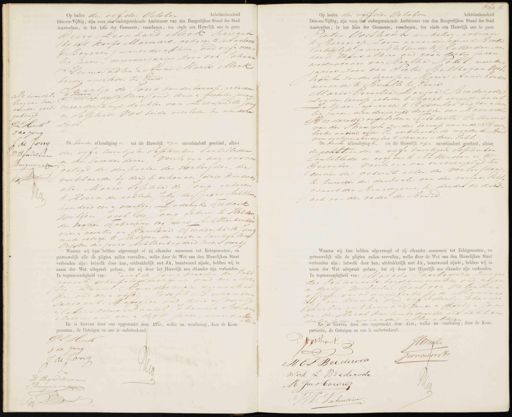 ling van twee De bovenst woorden goed„ gekeurd. G L Heck J de Jong J de Jong D Rynderman Burgmenn g Estolen 1H9 Op heden den vijfden October Achttienhonderd Drie-en-Vijftig, zijn voor ons ondergeteekende Ambtenaar van den Burgerlijken Stand der Stad Amsterdam, in het huis der Gemeente, verschenen, ten einde een Huwelijk aan te gaan Oeorg Leonhard Meck sergeant bij het korts Mariniers, geboren te Ansbaeh Beyeren) wonende alhier, oud vijfen veer„ tig jaren, meerderjarige zoon van Johann Heimstadten en Anna Maria Meck 3 beide overleden ten Eenre aartje de Jong zouden beroep, geboren te Hoorn wee en wonende alhier oud drie en veeritig jaren stel goede meerderjarige dochter van Lieuwe de Jona en Sophia Vos beide overleden ten andere zy de. „ „ De beide afkondiging en tot dit Huwelijk zi onverhinderd geschied, alhier 119 den vijf en twintigsten September laatstleden A. „ n den tweeden dezen Voorts zyn aan ons over m gelegd de doopaeten den verloofden, die n verklaarden by deze te erkennen drie kinderen, als: Maria Sophia de Jong, geboren te Hoorn de achtsten July des jaars Achttien„ 18 Lodewyk Fredrik honderd een en veertig, Willem Jacob de Jong geboren te Helden den zesden February des jaars Achttienhonderd vier en veertig en Carolina Frederika de Jong mede geboren te Helden den negen en twintigsten October des jaars Achttienhonderd zeven e veertig Waarna wij hun hebben afgevraagd of zij elkander aannemen tot Echtgenooten, en getrouwelijk alle de pligten zullen vervullen, welke door de Wet aan den Huwelijken Staat verbonden zijn: hetwelk door hen, uitdrukkelijk met JA, beantwoord zijnde, hebben wij in naam der Wet uitspraak gedaan, dat zij door het Huwelijk aan elkander zijn verbonden. In tegenwoordigheid van: Jacob de jJang broeder den Echt genoote scheefstimamerman oud een en der„ tig, Daniel Rynderman diamants nij den oud een en vijftig, Joscpt Burgmann sergeant. Marinien oud drie en veertig e Arnoldus Daniel Johinnes Seemans als voren oud een en diklij jaren, wonende allen lhien En is hiervan door ons opgemaakt deze Akte, welke na voorlezing, door de Kom- peranten, de Getuigen en ops is onderteekend 2 peranten, de Getuigen en ops is onderteekend GL Heek 3 de Jong de Jong 1 D Rynddrman Burgmenmer J Plmem Wifon Op heden den vijfden October Achttienhonderd Drie-en-Vijftig, zijn voor ons ondergeteekende Ambtenaar van den Burgerlijken Stand der Stad Amsterdam, in het huis der Gemeente, verschenen, ten einde een Huwelijk aan te gaan ieter Oosthout winkelier, geboren te Bergen op Zoom arrondissement Breda aitstelyk ge woond hebbende te Rotterdam, wo„ nende thans alhier oud zes en dertig jaren, weduwen aan van Bertha Totel, meerder„ jarige zoon van Pieter Baltha zan Oost„ hout zouden beroep en Maria Anna Konson wonende te Brielle ten Eenre Maria Cornelia Louisa Brederode zouden beroep geboren te Bergh arrondissen enk Zutphen, wonende te Geoenloo oud een en twi „jaren, minderjarigen dochter van Leonardus Brederode overleden en Filiberta Catharina van den spruyk zonder beroep wonende te Groen loo ten andere zijde En verklaarde de moeder der Brye voor ons tegenwoordig toe te stempen en dezes Echt. De beide afkondigingen tot dit Huwelijk zijn onverhinderd geschied, alhier de achttienden en vijfen twintigsten September laatstleden en evenroo te Rötterdam en te Groenloo. voorts zyn aan ons overgelyd ten eersten de geboorte-acten den verloofden te tweeden de doodacte van den voriger Echt„ genoot des Bruidegoms, te derde de dood„ acte van den vader den Bruid. Waarna wij hun hebben afgevraagd of zij elkander aannemen tot Echtgenooten, en getrouwelijk alle de pligten zullen vervullen, welke door de Wet aan den Huwelijken Staat verbonden zijn: hetwelk door hen, uitdrukkelijk met JA, beantwoord zijnde, hebben wij in naam der Wet uitspraak gedaan, dat zij door het Huwelijk aan elkander zijn verbonden. In tegenwoordigheid van: Marcus acobo wiez Zwager des Echtgenoots borduurwerken oud negen en dertij, Wilhelm arl von vatertina sicien van ad ministratie by de Marine hief van denzelve oud vijfen dertig, Johannes Cornelis zuubsenaor oud zeven en dertig en Jan van den Horst kantoorbediende oud acht en dertig jaren wonende allen alhier En is hiervan door ons opgemaakt deze Akte, welke na voorlezing, door de Kom- paranten, de Getuigen en ons is onderteekend. 1 Vosthaut JCornelis D d Joondoort M C L Brederoct Wed L Brederode M. Jacoboiien 49 1 in