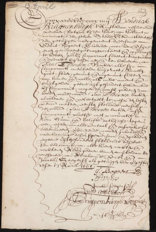 Amsterdam City Archives, archive number 5075, Archief van de Notarissen ter Standplaats Amsterdam, 1578-1915, inventory number 3183A, HENDRICK BRUIJNENBURGH, Minuutacten en afschriften. Alles zonder index, 1666 jan 5-1666 dec. 29., 1666