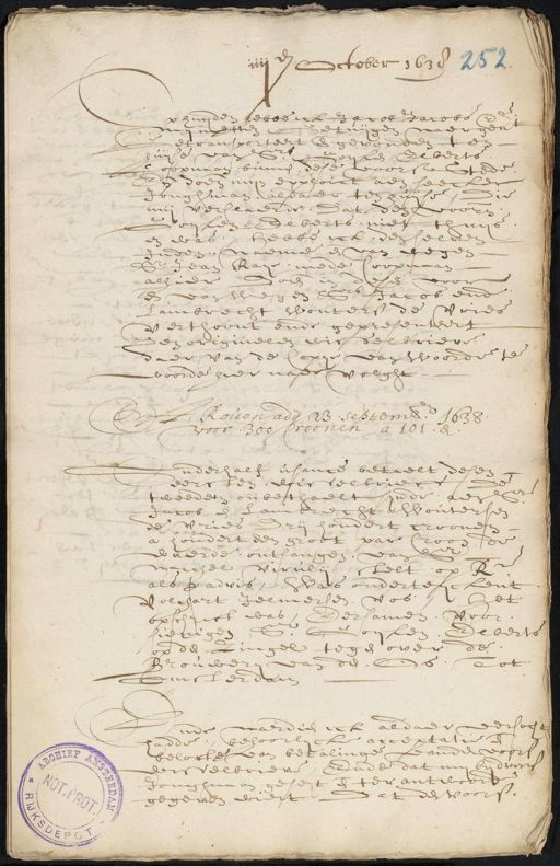 Stadsarchief Amsterdam, archieftoegang 5075, Archief van de Notarissen ter Standplaats Amsterdam, 1578-1915, inventarisnummer 418B, JACOB JACOBS EN NICOLAES JACOBS, Minuutacten, zonder index, 1638 Oct-Dec., 1638