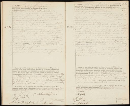 J PEmshryze Eek. J Linsaloo Nemyj 3 No. 1278 Achttienhonderd D.B Op heden ttien ul Acht-en-Zeventig, zijn voor ons ondergeteekende Ambtenaar van den Burgerlijken Stand van Amsterdam, in het huis der Gemeente verschenen, ten einde een Huwelijk aan te gaan Abraham Emanuel Tohen, zonder beroep, geboren te Helder, wonende alhier, oud twee en twintig jaren, min derjarige zoon van Emanuel Abraham Cahen, koopman, wonende alhier en Marianne Moges Bruinvels, overle„ den, ter eenre en Alargaretha Gobets, zonder beroep, geboren en wonende alhier, oud twee en twintig jaren, minderjarige dochter van Jacob Machiel Gobets, koop 93 man en Klaartje Klyn, wonende alhier, ter anderezyde En verklaarden de vader desbruidegoms ende ouders der bruid, voor ons tegenwoor dig, toe te stemmenin desen echt Debende afkondiging en tot dit Huwelijk zijn onverhinderd geschied, alhier den drie en twintigsten en dertigsten Juni laatstleden. Voorts zijn aan ons overgelegd ten eersten: de geboorte actender ver„ loofden, ten tweeden: de doodacte van de moederdesbruidegoms Waarna wij hun hebben afgevraagd of zij elkander aannemen tot Echtgenooten, en getrouwelijk alle de pligten zullen vervullen, welke door de Wet aan den Huwelijken Staat verbonden zijn: hetwelk door hen, uitdrukkelijk met JA, beantwoord zijnde, hebben wij in naam der Wet uitspraak gedaan, dat zij door het Huwelijk aan elkander zijn verbonden. In tegenwoordigheid van Machiel Gobets broeder der echtge noote Tjouwerman oud drieendertig lozes Cohen broeder des echtgenoots zonder beroep oud vijf entwintig Barend Drukker kleermaker oud negenendertig en Innon Jacobs diamantwerker oud zevenentwintig Jaren wonende allen alhier En is hiervan door ons opgemaakt dezeAkte, welke na voorlezing, door de Kom- varanten, de Getuigen en ons is onderteekend itgezonderd de vader des echtgenoots deouders der echtgenoote ende eerste getuige die verklaardenhiet y te kunnen schrijven lli i Sch oveer1