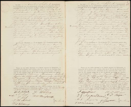 No. 21310 Op heden Zeventien September Achttienhonderd Vier-en-Tachtig, zijn voor ons ondergeteekende Ambtenaar van den Burgerlijken Stand van Amsterdam, in het huis der Gemeente, verschenen, ten einde een Iuwelijk aan te gaan Hendrikus Aloysius Antink Oorstelmaker, geborente Aalten, wo nende alhier, oud negen en twintig jaren, meerderjarige zoonvan Johannes Hendrikus Antink en Anna Mar„ Garetha Schulingkamp, beiden overle den, ter eenreen dienstbode, geboren Neeltje Loef. 7 en wonende alhier, oud twintig jaren minderjarige dachter van PieterLoef Op Koopman en Wimpje Roos, wonen de alhier, ter anderzijde En verklaar„ den deouders der bruid vooronttegen woordig, toe te stemmen in dezen echt De beide afkondiging en tot dit Dareie zijn onverhindend geschied, alhier. Den Zevenden en Veertienden dezer Voorts zijn aan ons overgelegd, en eersten: degeboorte akten der verloofden, ten tweeden: de doodak ten van de ouders desbruidegoms— Waarna wij hun hebben afgevraagd of zij elkander aannemen tot Echtgenooten, en getrouwelijk alle de plichten zullen vervullen, welke door de Wet aan den Huwelijken Staat verbonden zijn: hetwelk door hen, uitdrukkelijk met JA, beantwoord zijnde, hebben wij in naam der Wet uitspraak gedaan, dat zij door het Huwelijk aan elkander zijn verhonden. In tegenwoordigheid van: Johannes Hendricus Antink broeder des echtgenoots laarzenmaker oud vierendertig Francois Simon Veltkamp borstelmaker oud drieendertig Jan Ebbeling borstelmaker oud vyfendertig en Pieter Wilhelm Burghgraaff. boekinder oud vierentwintig jaren wonende allen alhier En is hiervan door ons opgemaakt deze Akte, welke na voorlezing, door de Kom- paranten, de Getuigen en ons is onderteekend, uitgezonderd de moeder der echtje noote die verklaarde niet te hunnen schrijven. . . . . . . . . . . . . . . . . . . . . . . . . . . . . . . . . . . . . . . . . . . . . . . . . . . . . C „. H A Antink Ebbeling No. 2137 Op heden Zeventien September Achttienhonderd