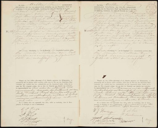 „..... . . . . . . . . . . . .. Gel No 1268 Op Heden Achttien Puni Achttienhonderd Vijf-en-Tachtig, zijn voor ons ondergeteekende Ambtenaar van den Burgerlijken Stand van Amsterdam, in het huis der Gemeente, verschenen, ten einde een Huwelijk aan te gaan „ Johannes Henricus Ramringa bakker, geboren te Nieuwer Amstel, wonen de alhier oud negen en twintig jaren, meer derjarige notuurlike niet erkende zoon van Hendrikje, Samringa, overleden, teranvee Jantje Stukwerda, zonder beroep geborente Francker, wonende alhier Joud zes en twintig jaren, meerderjarige dachter van Tialling Stukwerda koopman en Sijtske Polsma Wo