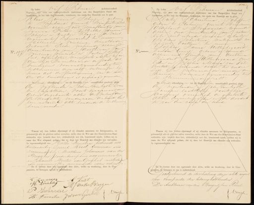 No. 1971 Op heden Vijf Febuari Achttienhonderd Negentig, zijn voor ons ondergeteekende Ambtenaar van den Burgerlijken Stand van Amsterdam, in het huis der Gemeente, verschenen, ten einde een Huwelijk aan te gaan Claaswerver, Schipper, geboren te Houdsend, gemeente Wijmbritseradeel wonende alhier oud Zevenentwintig jaren zoon van Pieter Melles virver Schipper en Ynskje Klazes de Vries, wonende te Leeuwarder, ter eenven Cillectien Vrieling, dienstbode, Geborente Eelde, wonende alhier, oud 7 drieentwintig jaren, doettervan Jan Vrieling (overleden en Pantien Stof¬ fers, arbeidster, wonende te Assen, ter an dere zijde Enverklaarde de vader des bruidegoms voor onstegenwoordig toe Testemmenn desen echt. verklarende hy tevens dat de toestemming van de moe„ der des bruidegoms is gevraagd geworden deide afondigingen tot dit Kunent zijn onverbhnderd geschied afigr den vijftienden en tweeen twintigsten Decem ber laatstleden. Voorts zijn aan ons over Gelegd de geboorte akten der verloofden dedoorakte van den vader derbruid. En eene notariëele akte houdende de toestemming harer moeder. Waarna wij hun hebben afgevraagd of zij elkander aannemen tot Echtgenooten, en getrouwelijk als de plietten vulen gewuden, welke door de Wet aan den Haveljlechen Staa. verbonden zijn: hetwelk door hen, uitdrokkelijk met JA, beantwoord zijnde, hebben wij in daaer der Wet uilspraak gedaag dat vij door het Huwelijk dan dlander zijn verlonden. in tegenwoordigheid van Halke Peenstra bediende ond tweeendertig Gerrit Krist tuinman oud Zevenendertig Mattheus Johannes van der Breggen zonderberoep oud negenenzestig en Johannes Wouter van Ginkel metselajn van negenenvijftig jaren wonende allen alhier- En is hiervan door ong opgemaakt deze Akte, welke na voorlezing, door de Com- paranten, de Getuigen en ons is onderteekend. t Zwerveg Kuist uieling Waarna wij hun hebben afgevraagd of zij elkander aannemen tot Echtgenooten, en getrouwelijk als de plietten vulen gewuden, welke door de Wet aan den Haveljlechen Staa. verbonden zijn: hetwelk door hen, uitdrokkelijk met JA, beantwoord zijnde, hebben wij in daaer der Wet uilspraak gedaag dat vij door het Huwelijk dan dlander zijn verlonden. in tegenwoordigheid van Halke Peenstra bediende ond tweeendertig Gerrit Krist tuinman oud zevenendertig Matikeus Johannes van der Breggen zonderberoep oud negenenzestig en Johannes Wouten van Ginkel metselaa van negenenvijftig jaren wonende allen alhier- En is hiervan door ong opgemaakt deze Akte, welke na voorlezing, door de Com- paranten, de Getuigen en ons is onderteekend. K Zenroen VK.17 H. Vrieling MJ van der Breggen P Vawerzer Driessen H. Feenstea JW van Ginrel No. 2 Op heden Vijf Februari Achttienhonderd Negentig, zijn voor ons ondergeteekende Ambtenaar van den Burgerlijken Stand van Ammsterdam, in het huis der Gemeente, versehenen, ten einde een Huwelijk aan te baan Zuke SChuitema, Schipper, geboren te Elahuizen gemeente Henrelumer Ploephaert en Noordwolde, wonende Alhier oud vierentwintig jaren, notaris lijke niet erkende zoon van Aukje Sybrens Schuitema, winkelierster wo nsendete Oosthem, ter eenveer apbia Laura Uittenbogaard zonder beroep, geboren en wonende alhier, oud twintig jaren, dachtervan Rijndert Jan Wittenkogaard. Over leden en Soptia Maria van Pol, Werkster wonende alhier ter andere Zijde. En verklaarde de moeder den brud, voor ans tegenwoordig toe te stemmenin dezen echt De beide afkondigingen tot dit Hundgkzijn onverhinderd geschied, alhier den negentienden en Zesen twintigsten Januari laatstleden. Voorts zijn JAanons overgelegd, de gebolorte Akten der verloofden en de doodak te van den vader der bruid Waarna wij hun hebben afgevraagd of zij elkander aannemen tot Echtgenooten, en getrouwelijk alle de plichten zullen vervullen, welke door de Wet aan den Huwelijkschen Staat verbonden zijn: hetwelk door hen, uitdrukkelijk met JA, beantwoord zijnde, hebben wij in naam der Wet uitspraak gedaan, dat zij door het Huwelijk aan elkander zijn verbonden LIGIN In tegenwoordigheid van: En is hiervan door ons opgemaakt deze Akte, welke na voorlezing, door de Com- parafiten, de Getuigen en ons is onderteekend. Goedgekeurd de doorhaling dezer akte wegens won-comparitie der belanghebbenden De Ambtenaar van den Burgerlijken Rand Driessen