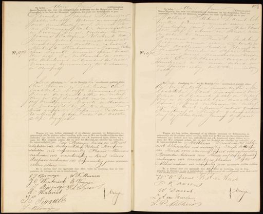 7 J C Winterink 43 Wuirman Bosmeijer SK Gjaar No. 1101 Geot Op heden drie 3 Achttienhonderd Een-enNegentig, zijn voor ons ondergeteekende Ambtenaar van den Burgerlijken Stand van Amsterdamm in het huis der Gemeente versekenen, ten einde een Huwerlijk aan te gaan Alterns Wilhelmus Idems, let 9 Tersetter. geboren enwonende achier, oud eenentwintig jaren zoon van Petrus Ddems Kleermaker Anna van Heerde, wonen de alhier, ter eenree Engelina de Houdt Zon der beroep geboren en wonende alhier, oud twintig ja ren, dochter van Hendrik Johannes de Houdt overleden en Jelena Kroou 5 onder beroep wonende alhier, terander Zijde. En verklaarden de ouders des Arundegoms en de moeder derbruid, voor Ons tegenwoordig toe te stemmenn dezen Octs De Oeide afkondigingen tot dit Kuweljkzijn ouverhinderd geschred, alhier. Een Vierentwintigsten en eenendertigsten Mei laatstleden. Voorts zijn aan ons over gelegd, de gebooste akten der verloot den en de doodakte van den vader der bemd: Voorts verklaarden de verloof den bij deze te erkennen een kind genaamd Engeling de Houdt, geboren alhier den vijf entwintigsten Januari dezesjaars. Waarna wij hun hebben afgevraagd of zij elkander aannemen tot Echtgenooten, en getrouwelijk alle de plichten zullen vervullen, welke door de Wet aan den Huwelijkschen Staat verbonden zijn: hetwelk door hen, uitdrukkelijk met JA, beantwoord zijnde, hebben wij in naam der Wet uitspraak gedaan, dat zij door het Huwelijk aan elkander zijn verbonden. In tegenwoordigheid van: Waltherus Taemsoom des echtge¬ noots kleermaker oud eenenwijftig. Lodewijk Antoniuus van Heerde oom alsvoren sinid oud vijfenveertig Bernardus Antonius van Heerde niet der echtgenoots werkman oud vierendertig en Johannes Pieter Ahlheid werkman oud vierendertig jaren wonende allen alhier En is hiervan door ons opgemaakt deze Afte, welke na voorlezing, door de Com- paranten, de Getuigen en ons is onderteekend, uitgzonden de echtgenoote onde beide moeder die verklaarden niet te kunnen schrijven.) .. . . . . . .. d W.V Daems B.O vn Heende P Raen W Daerns Driessen A van Reerde d. S. Ahbhers