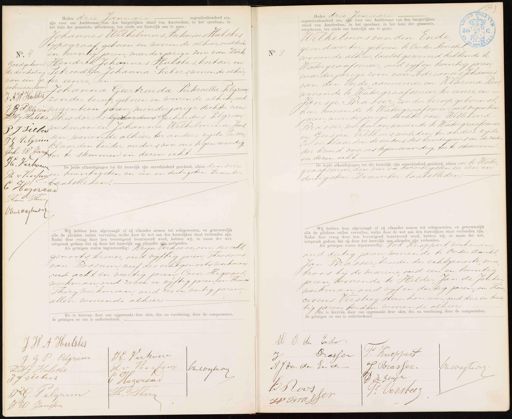 Goedgekeurd de doorhaling van eén ge schreven woord. J: A W: Hulster J G P Velgrem D: Hy Hulster J Silber FG Eelgrina ah. W Jan H. Verhoeve Th v Versen C J Hererai 6 Thans Thirc Vauwagtendag Heden drie Januari negentienhonderd zes, zijn voor ons Ambtenaar van den burgerlijken stand van Amsterdam, in het openbaar, in het huis der gemeente, verschenen, ten einde een huwelijk aan te gaan: Johannes Wilhelmus Antonius Hulskes, ypograaf, geboren en wonende alhier, oud drie en twintig jaren, meerderjarige zoon van Dirk No. 4 Goedgekeurd Hendrik Johannes Hulskes, koetsier en e doorhaling Petronella Johanna Siebers, wonende alhier, an één ge ter eenre, Ten hreven vord Johanna Geertruida Pieternella Pelgrin, P: V: Von da zonder beroep, geboren en wonende alhier oud JH Velvren negentien jaren minderjarige dochter van Hy Hulszer Theodorus-Geardus Gerhardus Telgrim, J Siebe Verkman en Johanna Wilhelmina JansRelgrinsen, wonende alhier, ter andere zijde inverho W Janel aarden beider ouders, voor ons tegenwoordig, toe te stemmen in dezen echtE: Verhen Jn Hee tn den vier t v Vorsen en twintigsten en een en dertigsten December Plaatstleden. bezercad 6 hann Thirc Uulvagtendag Wij hebben hun afgevraagd of zij elkander nemen tot echtgenooten, en getrouwelijk alle de plichten zullen vervullen, welke door de wet aan den huwelijken staat verbonden zijn. Nadat deze vraag door hen bevestigend beantwoord werd, hebben wij, in naam der wet, uitspraak gedaan dat zij door het huwelijk aan elkander zijn verbonden. Als getuigen waren tegenwoordig: Krijn Verhoeve oom des echtgenoots, kruuer, oud vijftig jaren, Theodorus van Rossum heef des echtgenoots werkman, oud acht en veertig jaren Coen Hegeraad, werkman, oud zeven en vyftig jaren, en Thomas Thiry werkman, oud zes en veertig jaren allen wonende alhier. En is hiervan door ons opgemaakt deze akte, die, na voorlezing, door de comparanten, de getuigen en ons is onderteekend. No. 4 No. 5 Heden drie Januari negentienhonderd zes, zijn voor ons Ambtenaar van den burgerlijken stand van Amsterdam, in het openbaar, in het huis der gemeente, verschenen, ten einde een huwelijk aan te gaan: Wilhelmus van den Ende grondwerker, geboren te Ouder Amstel 1 wonende alhier, laatst gewoond hebbende te Watergraafsmeer, oud vyf en twintig jaren, meerderjarige zoon van Adrianus Johannes van den Ende aannemer en Klazina Roos, wonende te Watergraafsmeer ter eenre, en Jansje Brasser zonder beroep, geboren dl hier, wonende te Watergraafsmeer oud negentien jaren, minderjarige dochter van Willeboord Brasser werkman, wonende te Watergraafsmeer en Geesjen Velthuis, overleden, ter andere zijde in verklaarden de ouders des bruidegoms en de vade der bruid, voor ons tegenwoordig, toe te stemmen in dezen echt. De beide afkondigingen tot dit buwelijk zijn onverhinderd geschied, alhier en te dater graafsmeer, den vier en twintigsten en één en dertigsten December laatstleden.Wij hebben hun afgevraagd of zij elkander nemen tot echtgenooten, en getrouwelijk alle de plichten zullen vervullen, welke door de wet aan den huwelijken staat verbonden zijn. Nadat deze vraag door hen bevestigend beantwoord werd, hebben wij, in naam der wet, uitspraak gedaan dat zij door het huwelijk aan elkander, zijn verbonden Als getuigen waren tegenwoordig: Tok Knoppert, werkman oud dertig jaren wonende te Ouder AmstelJan Brasser, broeder der echtgenoote, matroos bij de marine oud een en twintig jaren wonende te Helder, Jan de Jonke werkman oud vijf en dertig jaren, en Tran ciscus Versteeg steenhouwer, oud drie en twintig jaren beiden wonende alhier En is hiervan door ons opgemaakt deze akte, die, na voorlezing, door de comparanten, de getuigen en ons is onderteekend. J: H: A Hulskes H. Verkoer G P Pelgrim Th v Hosfro Van Wogtenorg D HJ Hulsker a W J siebers 1 s Boegeraad Th. Shirg PC Telyurm JW Janssen W. O. den Endto Prasser J. Knoppert. A J van den En de a Brasser. Van Wagtervog D de Boe L Roos J=a Versteeg J Brasfen