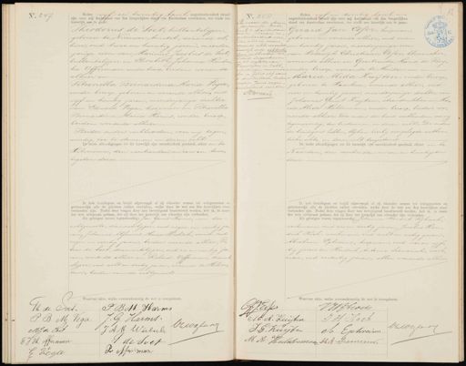 No. 247 Heden vijf en twintig April negentiienhonderd twaalf zijn voor mij Ambtenaar van den burgerlijken stand van Amsterdam verschenen, ten einde een huwelijk aan te gaan: Theodorus de Soet, brillantslijper, geboren te Nieuwer-Amstel, wonende al„ hier, oud twee en twintig jaren, meerder„ jarige zoon van Marinus Jacobus de Soet„ brillantslijper en Elisabeth Johanna Hendri„ ka Offerman, zonder beroep, beiden wonende alhier en Petronella Bernardina Maria Vega„ zonder beroep, geboren en wonende alhier, oud vijf en twintig jaren, meerderjarige dochter van Eduard Vega, koopman en Petronella Bernardina Maria Harms, zonder beroep; beiden wonende alhier.— Beider ouders verklaarden, voor mij tegen„ woordig, toe te stemmen in dezen echt- De beide afkondigingen tot dit huwelijk zijn onverhinderd geschied, alhier en te tilversum, den veertienden en een en twin„ tigsten dezer Ik heb bruidegom en bruid afgevraagd of zij elkander nemen tot echtgenooten en getrouwelijk alle de plichten zullen vervullen, welke door de wet aan den huwelijken staat verbonden zijn. Nadat deze vragen door hen bevestigend beantwoord werden, heb ik, in naam der wet, uitspraak gedaan, dat zij door het huwelijk aan elkander zijn verbonden. Als getuigen waren tegenwoordig: Jan Gerrit Harms, oom der echtgenoote, diamantslijper, oud negen en veertig ja„ ren, Johannes Alfonsus Maria Wielick, smid, oud negen en veertig jaren, beiden wonende alhier; Te„ trus de soet, diamantslijper, oud zes en veertig ja„ ren, wonendealhier en Richard Offerman, diamart, lijper, oud acht en dertig jaren, wonende te Hilver, sum, beiden oom des echtgenoots.- . 118 No. 24 Dijvonnis-der Arron. dissements- Recht. ank te Amsterdam van zes Februari ne„ gentienhonderd veer„ tien is het in nevens staande akte vermelde huwelijk door echtsche ling ontbouden ver dlaard. Ingeschreven in het register van Huwelijken en Echt¬ scheidingen nummer één a, folio elf vers- te Amsterdam, heden dertien Juni negen. tienhonderd veertien Horcuis Heden vijf en twintig April negentienhonderd twaalf zijn voor mij Ambtenaar van den burgerlijken stand van Amsterdam verschenen, ten einde een huwelijk aan te gaan: Gerard Jan Esser, koopman, geboren en wonende alhier, oud zeven te en twintig jaren, meerderjarige zoon van Lodewijk Christiaan Esser, kleermaker; wonende alhier en Geertruida Maria de Rooy zonder beroep, wonende te Muiden en en Maria Alida Kuijten, zonder beroep; geboren te Haarlem, wonende alhier, oud vier en twintig jaren, meerderjarige dochter van Johannes Gerrit Ruijten, steendrukker en Ma„ ria Alida Halderman, zonder beroep, beiden wo„ nende alhier. De ouders der bruid verklaarden, voor mij tegenwoordig, toe te stemmen in dezen echt. De ouders des bruidegoms hebben, blijkens hierbij overgelegde authen„ tieke akte, in dezen echt toegestemd. De beide afkondigingen tot dit huwelijk zijn onverhinderd geschied, alhier en te Naarden, den veertienden en een en twintigsten dezer.- Ik heb bruidegom en bruid afgevraagd of zij elkander nemen tot echtgenooten en getrouwelijk alle de plichten zullen vervullen, welke door de wet aan den huwelijken staat verbonden zijn. Nadat deze vragen door hen bevestigend beantwoord werden, heb ik, in naam der wet, uitspraak gedaan, dat zij door het huwelijk aan elkander zijn verbonden. Als getuigen waren tegenwoordig: Johannes Hendrik Rijbroek, werkman, oud zes en dertig jaren, Jacobus Hen„ drik Koch, werkman, oud acht en zestig jaren; Abraham Ephraim, koopman, oud vier en vijf„ tig jaren en Hendrik Antonie Siemerink, werk„ man, oud zeventig jaren, allen wonende alhier Waarvan akte, welke overee tig de wet is voorgelezen. Waarvan akte, welke overeenkomstig de wet is voorgelezen. P B M Harms Th de Ovet¬ J.G. Harms P. B: M: Vega. Vawakan J A M Waelulr MJ de Poot de Soet E J Ih offerman L affrman E Vegu 1s Voorgelezen. JWibwoels G: Vesser 1 AE: A. Luijten J H: Hach Va wypersy J P. Kuijter A Ephram M A Halderman HA siemerm