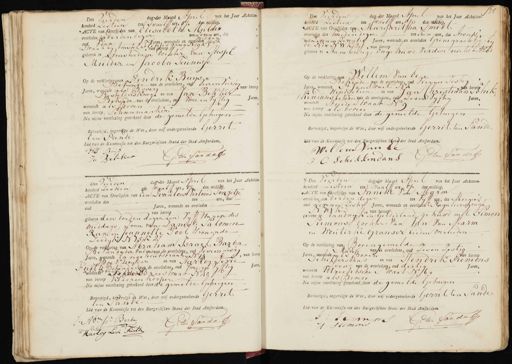 Den vierden dagder Maard Nhril van het Jaar Achttien honderd zestien een Twaalf ure, 9 den middag. ACTE van Overlijden van Elisabeth Mulder overleden den verden dezer ten zeven ure, des id dag oud Vijen Jaren, wonende en overleden Kerk stes gang N19K straat bij Amstel J Vat geroep R geboren is Amsterdam dochter van Hessel Mulder en Jacoba Teunisse Op de veraigg van Hendrik Buijsjo Beponde van de overledene, oud vieren Veertig van beroep Jaren, vogerde als Boven ge steldersKnegt en van Jan Bekker Bekende van de overledene, ae twee en vijftig Jaren, wonende als woven van beroep: Schoenmaaker Na mijne voorlezing getekend door de gemelde tetuigen Bevestigd, ingevooge de Wet, door mij ondergeteekende Gerrit Een Sande Lid van de Kommissie tot den Burgerlijken Stand der Stad Amperdam. Hk Buijs ten Van der Ja Bekker Den Vierden dag der Maard April van het Jaar Achtten honderd zestien ten twaalf ure, op den vulddag. ACTE van Overlijden van Margaretha Smidt overleden den tweeden dezer ten Tien ure, dis Aronds,e oud zeven en Zeventig Jaren, wonende, en overleden Grimgrachtje by de. Nev N W127/, van beroep geboren te Stamburg, ongehuwd Verder niets bekel Op de verklaring van Pillem Van Ee„ Bekende van de overledegen oud Vier en Zestig Jaren, wonende S Janstraat. R4. beroep Winkelier en van Jan Christiaan Schik hendang bekende van de overlegene, op zesen Vijftig Jaren, wonende Huidestraat No van beroep als boven Na mijne voorlezing geteekend door de gemelde Getuigen Bevestigd, ingevolge de Wet, door mij ondergeteekende Gerrit ten Sande bid van de Kommissie tot den Gurgerlijken Stand der Stad Amperdam. Willem van de G: ten Sande J C: Schikkendans Den Vierden dag der Maand April van het Jaar Achttien honderd Zestien een waalftige, op den middeg ACTE van Overlijden van Een Zeven loost verloond Iongege overleden den ten ure, des oud Jaren, wonende en overleden van beroep geboren den derden dezer den Vijf Uuren des middags, zoon van Daniq E Salomon Ran en Jeannette Poób Wonende Leed„K N 15K 2„ Oarig vertering van Abraham Iragl. Barba Betende der Ouders van de overledene, oud Vier en Zestig S, van beroep Jaren, wonende lanaehoutstraat, No 12 sooekhouder en van Harrog Lepie wonende ooeende van de overledene, oud twee en vijfftig Jaren 17tn Pooderen reestraat N 49 16 van beroep kleeren kooper Na mijne voorlezing geteekend door de gemelde Getuigen. Bevestigd, ingevolge de Wet, door mij ondergeteekende Gerrit Een Sande Lid van de Kommissie tot den Burgerlijken Stand der Stad Amsterdam. Abr/n Barba G: Een Sande Vartog Leve Purth Den Vierden dag der Maand Ahril van het Jaar Achttien- honderd Zestien ten Twaalf ure op: der middag ACTE van Overlijden van Anneke van Marm overleden ten derden dezer ten Vyfigg, des Morgens oud zevenen zestig Jaren, wonende en overleden Regulier gragt N 107 3, van beroep geovenje landwyk inGeederland, gehuwd met Timon Siemons, dochter Van Jan Van Marm en Wouterke Granser beiden overleeden Op de verklaring van Bovengemelde Manit van de overledene, oud zesen Zestig Co van beroep Jaren, wonende als Boren Sch: Gersbaas en van Hendrik Siemons zoon van de overledeng, oud dertig Jaren, wonende Uttrechtsche Swaat N 160. van beroep als Bover Na mijne voorlezing geteekend, door de gemelde Getuigen Bevestigd, ingevolge de wet, door mij ondergeteekende Gerrit ten Sande Lid van de Kormissie tot den Burgerlijken Stand der Stad Amsterdam. ten San de P Sum H Siemons