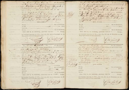 van de Overledene. Beroep Deze Acte is, na voorlezing, geteekend door de Getuige en bevestigdingevolge de Wet, door mij, Lid van de Kommissie tot den Burgerlijken Stand der Stad-Amsterdam. Gte San der Goedgekeurd de doorhaling van Hendrik Willem. Gte Sande Den Eersten September Ao. 1800 zeventien ten Elf ure, voor den middag, is ingeschreven, het AFSTERVEN, van Jan Doesburg - Overleden den dertig Augo ten zes ure, des morgens oud achte vijftig Jaren, wonende Spin en Vieuwe werkhuis No. Kanton =, en aldaar overleden; Geboren te Amsterdam ingehuwd zoon van Fredrik Doesburg en Hendrik Willem Willemyn tje van Gelkenhorst. — Ingevolge procesverbaal indato 30 aug sll van gemelde nis. Op de verklaring van oud — Jaren, wonende Beroep van de Overledene, en van Oud Jaren, wonend E Beroep van de Overledene. Deze Acte is, na voorlezing, geteekend door de — Getuige, en bevestigd ingevolge de Wet, door mij, Lid van de Kommissie tot den Burgerlijken Stand der Stad Amsterdam. G: ten Sande