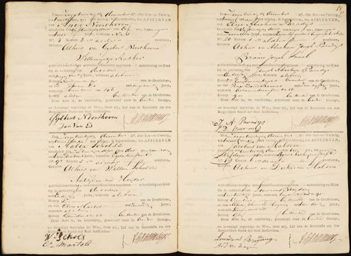 Den Zeven twintigsten december Ao. 1800 Een-en-Twintig, ten twaalf ure, op den middag, is ingeschreven, het AFSTERVEN: van Pontje Noorthoven. Overleden den vytienhijdtg deer ten Elf ure, des morgens oud twee Jaren, wonende Nes, No. 5 Kanton 2, en aldaar overleden, Geboren Alhier van Gysbert Noorthoven Willemyntje Bakker de Overledene heeftg onroerende Goederen nagelaten achterlating van Kind Op de verklaring van de vader oud negentwintig Jaren, wonende als boven Beroep Brandspuitneker van de Overledene oud negeventig Jaren. en van Jan van Es wonendebinker n 196 betoer als boor bekende van de Overedene, Deze Acte is, na voorlezing, geteekend door de beide Getuige, en bevestigd ingevolge de Wet, door mij, Lid van de Kommissie tot den Burgerlijken Stand der Stad Amsterdam. Gysbert Noorthoven AW danmerz Jan Van Es Den Zeventwintigsten december Ao. 1800 Een-en-Twintig, ten twaalf ure, opden middag, is ingesghreven, het AFSTERVEN, van Elsje Abraham Saradys Overleden den Vijftientiste dezer ten negen ure, des mogens oud zeventien Jaren, wonende Rapenburgerstraat bussemschakhofje No. 26 Kanton 1, en aldaar overleden, Geboren Alhier van Abraham Jouph Paradijs Branso Joceph Twaal. de Overledene heeft ge onronende Goederen hagelaten achterlating van Kind Op de verklaring van Jousch Abraham Daradys oud En twintig Jaren, wonende als boven beroep Vreenhouwer kracht broeder van de Overledene, en van Ring Dam Harmes oud zevenvyftig Jaren, wonende Notarin drvensmantt 51. Beroep ges bekend van de Overledene. Deze Acte is, na voorlezing, geteekend door de beide Getuige, en bevestigd ingevolge de Wet, door mij, Lid van de Kommissie tot der Burgerlijken Stand der Stad Amsterdam. AP van men J. A: Prradys drme Den Zeventinhisten december Ao. 1800 Een-en-Twintig, ten twaalf jare, t den middag, is ingeschreven, het AFSTERVEN van Aaltje Scholsz Overleden den Zestientiigsen dezer den arie ure, des midden oud tweedriekwart Jaren, wonende gelastienstraat No. 97 Kanton 5, en aldaar overleden, Geboren Alhier van Willem Scholtz Aalzje van er Heijder de Overledene heeft onroerende Goederen nagelaten — achterlating van Kind Op de verklaring van de vader oud Een det Jaren, wonende als boven Beroep simmerm van de Overledene, en van Eees Martel oud zen vieti Jaren, wonende als boven. Beroep Gouddreshtrekker bekende van de Overledene, Deze Acte is, na voorlezing, geteekend door de beide Getuige, en bevestigd ingevolge de Wet, door mij, Lid van de Kommissie tot den Burgergen Stand der Stad Amsterdam. AG vanman W: Jchols C=o Martel Den Zeventwintigsten december Ao. 1800 Een-en-Twintig, ten twaal fure, op den middag, is ingeschreven, het AFSTERVEN, van Jacobus van Malsem. erden den vier twintigsten decenber ten tien ure, des morgend Vyf dagen Jaren, wonende Agten ’t kathuijzenstraat Coverleden, No. 141 Kanton 6, en aldaar Gebore Achier van Dirkie van Malsem de Overledene heeftgen onroevende Goederen nagelaten achterlating van Kind Op de verklaring van Louwrins Breyding oud vientwintig Jaren, wonende Conderstet Dn 95 Beroep venters bekende van de Overledene, en van Albertus Johannes Ta Heijnen oud twee dertiig Jaren, wonende Konsgstoet 1 27. Beroep gebekende van de Overledene. Deze Acte is, na voorlezing, geteekend door de beide Getuige, en bevestigd ingevolge de Wet, door mij, Lid van de Kommissie tot den Burgerlijken Stand der Stad Amsterdam. Louwzens Breijding Alanman AS J: van Heyner