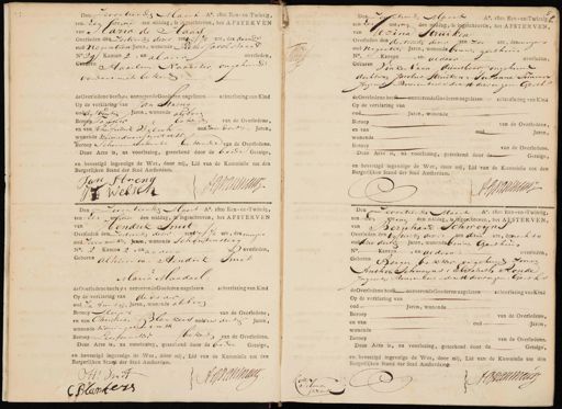 Zeventiende Maart Ao. 1800 Een-en-Twintig ten Een ure, ng den wddag, is ingeschreven, het AFSTERVEN van Gezina Struiken Overleden den dertienden dezer ten zes ure, des mogga oud negentig Jaren, wonende binnen gesthuis No. Kanton en aldaar overleden, Geboren Vinker Veen. dienstbaar ongehuwd dochterve Jacobus Struiken, Susanna Timmer Ingewoo Proces verboeli dito 16 deze vegen: Gerrt de Overledene heeftonroerende Goederen nagelaten -— achterlating van Kind Op de verklaring van ou Jaren, wonende Beroep „ van de Overledene en van Jaren, wonende Beroep van de Overledene. Deze Acte is, na voorlezing, geteekend door de Getuige, en bevestigd ingevolge de Wet, door mij, Lid van de Kommissie tot den Burgerlijken Stand der Stad Amsterdam. Alioamman Den Zeventienden Maart Ao. 1800 Een-en-Twintig ten Enure, na den middag, is ingeschreven, het AFSTERVEN van Hendrik Smit Overleden den zestienden dezer ten vif 72 ure, des morgen oud zeven weeke Jaarn, wonende Schoutensteeg No. 2 Kanton 2, en aldaar overleden, Geboren alhier van Hendrik Smit Maria Mandaal. de Overledene heeft gs onroerende Goederen nagelaten achterlating van Kind Op de verklaring van de vader oud zes twintig Jaren, wonende als born van de Overledene, Beroep sleep en van Christican Blankers oud vier dertig Jaren, wonende Koningst det n 34 Beroep Leesfernckerbeken van de Overledene Deze Acte is, na voorlezing, geteekend door de beide Getuige, en bevestigd ingevolge de Wet, door mij, Lid van de Kommissie tot den Burgerlijken Stard der Stad Amsterdam. AB dana Ot: Inst Blankers Koler Selma Klak VVent ten Een grene den middag, is ingeschreven, het APSTERVEN, van Bernhard Schweyns Overleden den vyftienden der ten drie ure, desrochts oud drie dertig Jaren, wonende binnen Goethuis No. Kanton, en aldaar overleden, Geboren Bergen. bakker. ongehurd. zoover Anthon Schweyns, Elisaberh Ronde Jngewege Proces verbaal dito 16 dezeroegen: Goetho de Overledene heeft onroerende Goederen nagelaten achterlating van Kind Op de verklaring van oud Jaren, wonende Beroep van de Overledene, en van v8 Jaren, wonende van de Overledene Beroep Deze Acte is, na voorlezing, geteekend door de Getuige, en bevestigd ingevolge de Wet, door mij, Lid van de Kommissie tot den Burgerlijken Stand der Stad Amsterdamo AAvanmaas