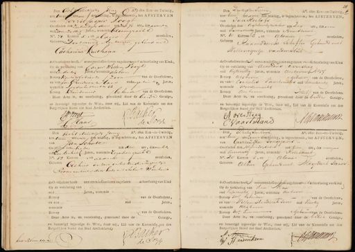 Den Achtmitigsten Kuni 1o 1800 Een-en-Twintig, ten twee ure via den mddag, is ingeschreven, het AFSTERVEN van Jer rit Casper Voogt Overleden den zestiwenhentig dezer ten zes 7 ure, des avonen oud zeven zestig Jaren, wonende bloemgracht No. 70 Kanton 5, en aldaar overleden, o Dortmeend Rentenien, gehuwd van Catharina Kuithann. de Overledene heeft onroerende Goederen nagelatennet achterlating van Kinde Op de verklaring van Carper Willem VoogD oud Een dertig Jaren wonende als boven Beroep kantoorbediend / zoon van de Overledene, en van Jan Christican Hais oud negentwintig Jaren, wonende Leydschestoet 4 Beroep krindenier bekende van de Overledene. Deze Acte is, na voorlezing, geteekend door de beide Getuige, en bevestigd ingevolge de Wet, door mij, Lid van de Kommissie tot den Burgerlijken Stand der Stad Amfterdam. CBacker W: Voogt de Jovgh Haas 1 Den Dertig snu Iunin Ao. 1800 Een-en-Twintig, a ten tien ure, voor den middag, is ingeschreven, het AFSTERVEN, van Jan Roelofs Overleden den Agttwintigmeditwr ten zes ure, des avon oud Tweeenveertig Jaren, wonende Boumstraat No. 10 Kanton 5, en Aldaar overleden, Geboren Raamddonk Schipper Gehuwd met Willemijnte van den Hul: de Overledene heeft onroerende Goederen nagelaten mitachterlating van Kind Op de verklaring van Arnoldus oversteeoud agteviftig Jaren, wonende als boven No 17. Beroep als bovengel van de Overledene, en van Cornelis Vaartmans oud tweeetwintig Jaren, wonende Woordesmarkt Beroep als boven Nief van de Overledene. Deze Acte is, na voorlezing, geteekend door de beide Getuige, en bevestigd ingevolge de Wet, door mij, Lid van de Kommissie tot den Burgerlijken Stand der Stad Amsterdam. A oversteeg Abanme C Vaartsans Den Achtetwintigsten Juny Ao. 1800 Een-en-Twintig, ten twee ure, na den middag, is ingeschreven, het AFSTERVEN van Jan Schuts Overleden den heden ten drie ure, desnulz ouEen Een half Jaren, wonende reguliers graoht No. 52 Kanton en gldaar overleden, Geboren Clhier ouder onbekend Ingevolg Proces verbael e dito hede nt etelm=o Weerhuis de Overledene heeft onroerende Goederen nagelaten -achterlating van Kind —— Op de verklaring van Jaren, wonende 01s— van de Overledene, Beroep oud en van Jaren, wonende (van de Overledene. Beroep Deze Acte is, na voorlezing, geteekend door de: Getuige, en bevestigd ingevolge de Wet, door mij, Lid van de Kommissie tot den Burgerliken Stand der Stad Amsterdam. Backer ik. de Toye Den Dertig Ctutuuy Ao 1800 Een-en-Twintig, ten tien ure, voor denmiddag, is ingeschreven, het AFSTERVEN, van Geertruyda Iongejand Overleden den Negen& zooderm ten twee ure, des morens oud Viereveertig Jaren, wonende Rozestraat No. 28 Kanton 5, en Aldaar overleden, Geboren Alhier Gehuwd met Meyndert Storen de Overledene heeft. onroerende Goederen nagelatenmit achterlating van Kind Op de verklaring van den Man oud vifenveertig Jaren, wonende des boom Beroep Ii Schilder van de Overledene, en van WillemHenderikSens oud Veertig Jaren, wonende den boom Beroep Wi Timmerman gebuuw van de Overledene. Deze Acte is, na voorlezing, geteekend door de beide Getuige, en bevestigd ingevolge de Wet, door mij, Lid van de Kommissie tot den Burgerlijken Stand der Stad Amsterdam. A Stom H vanmon W H enderiksen