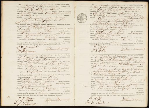 98 Smit Tstaamscherquriel B Draemer tigtien September Ao. 1800 Vier-en-Dertig, ten Een uren na den Kuiddag, is ingeschreven, het JAFSTERVEN van Anna Elisabeth Luckenaar Overleden den zeventiend deur ten ten ure, des morgen ond drie zestig Jaren, wooende Stelders udden No. 16 Kanton 2en aldaar Geboren Dehur, weduwe van Johannes Doll dochtervan Joort Henrik Luckenaar Barentie van der Horst de Overledene heeft ouvberende Goederen nagelaten met achterlating van Kind Op de verklaring van Johannes Doll oud achttwintig jaren, wonende als boven Beroep Gienzoon van de Overledene, en van Fredrik Hendrik Stolle oudenveertig Jaren, Jnyel n 313. wonende Beroep mr boordakker neef van de Overledene, Deze Acte is, na voorlezing, geteekend door Aerds Getuigen, en bevestigd ingevolge de Wet, door mij, als Withouder, daartoe ingevolge Art. 95 van het Stedelijks Reglement door den Ed. Achtb. Heer Burgemeester benoemd: Doll J Haamescherpural F: H Folle den Negentiend September Ao. 1800 Vier-en-Dertig ten twaalf ue. op den uidlag, is ingeschreven, het AFSTERVEN. van Frederik Sommeyer Overleden den zestiend deus en zes ure, des midde oud zeven zestig Jaren, wonende Schipper straat No. 10 Kanton 2 en aldaar overleden, Geboren te anvver beroep Smid gehuwd met Aatie Ians. verder met bekend de Overledene heeft zn onroerende Goederen nagelaten zonder achterlating van Kind Op de verklaring van Ioen Janien Korter oud vyf dertig Jaren, wonende als boven N1 Beroep m Choenmaker gebuus van de Overledene, en van Cornelis Jacol Wanninga oud acht dert Jaren, wonendeNieuwebrugsteeg N11 „Beroep Zeevarende bekende van de Overledene, Deze Acte is, na voorlezing, geteekend door leende Getuigen, en bevestigd ingevolge de Wet, door mij, als Vethouder, daartoe ingevolge Art 95 van het Stedelijk Reglement door den Ed. Achtb. Heer Burgemeester benoemd: WHaane tetergenee J Hster C J Noruraga en negentien September N. 1800 Vier-en- Dertig, ten Een ure, na den mideg, is ingegchreven, het AFSTERVET van Maria Pnilippina Therrn Overleden den achttiend dezer ten tien ure, des ame oud negentien Jaren, wonende Rl. Wittenturgenmard N 910 Kann 2: 5 aldaar wenden 2 Geboren Alhier geen beroep ongehuwd, doch terve Johannes BBernardus Terry & Marta Eliraber Hermans. de Overledene heeft Ge onroerende Goederen nagelaten achterlating van Kind Op de verklaring van Adoef Luf oud vyfzesttig Jaren, wonende Grie Katt buugraster tN1 Beroep werkmanDoom van de Overledene, en van Jan van Bruiren oud veertig Jaren, wonende Kl: Wittenb sroot n 9O beroep timmerman bezende van de Overledene. Deze Acte is, na voorlezing, geteekend door deide Getuigen, en bevestigd ingevolge de Wet, door mij, als Vethouder, daartoe ingevolge Art. 95 van het Stedelijk Reglement door den Ed. Achtb. Heer Burgemeester benoemd: d Luh aarscheruuring Jan Jan Buuren