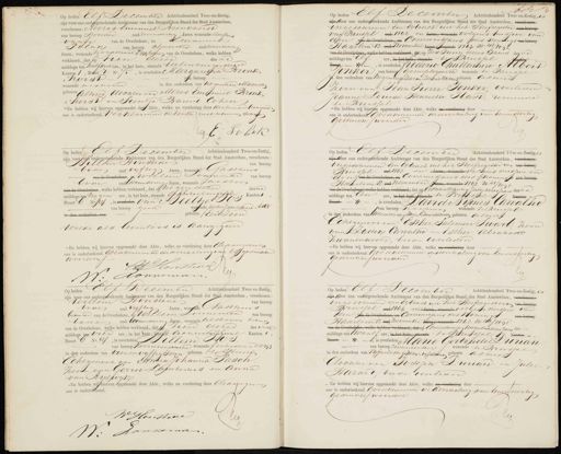 Buut — W—, is overleden Frederie Ghullaume Albert Jonker van beroep geemployeerin wonende te Brussel ik den ouderdom van Negentien Jaren zeven Maang geboren alhier zoon van Iean Pierre Ionker overleden en Jeanne Louise Henriette Hast, wonende te Brussel -En hebben wij hiervan opgemaakt deze Akte, welke na voorlezing door ons is onderteekend Goedkeurinde desoorhaling van Eenendertig gestreekte woorden leg December Achttienhonderd Tree-en-zestig Op heden zijn voor ons ondergeteekende Ambtenaar van den Burgerlijken Stand der Stad Amsterdam, verschenen Villem Honstede, van beroep boden oud vijftig Jaren, wonende Gasthuis van de Overledene, e Willem Lonneman van beroep bove oud dweeendertig Jaren, wonende Jals bovn van de Overledene, welke hebben verklaard, dat of negen dezer des na middags ten negen ure, in het huis, staande aahtertuin Kanton 1 x Buurt 6 No 34, is overleden van Neeltje HO wonende Pieter Jacobstraat A 165 van beroep geen geboren Een zoon in den ouderdom van wilke als levenloos is Aangegeven 6 -En hebben wij hiervan opgemaakt deze Akte, welke na voorlezing door be aangeveren ons is onderteekend. Goedkeurende de doorhaling van Elf gedrunt 7 woorden A constede ly Loupeman V Op heden Elf December Achttienhonderd Hres en-Zestig is zijn Voor ons ondergeteekende Ambtenaar van den Burgerlijken Stand der Stad Amsterdam, verschenen: ingeschreven Een lxtract uit het Sterfregister van van beroep Brussel oud 1862en Jaren, wonende volgens missive van en van de Overledene en Commissaris des Konins van beroep Haarlem 12 oud november Jaen wonende 1862 n 48/3095 van de Overledenen welke hebben verklaard, dat op achtentwintig July dezes Jaars des na ure, in het huis, staande te Briessel middags ten ten. O Centon Buurt - &o., is overleden Daird Mines Carvalho van beroep koopman wonende te Brussel (in den ouderdom van tweeenveertig Jaren en zevenstaanden geboren alhier Echtgenoot van Esther Salomon Swart, zoon van Ladok Carvalho en Esther Abraham Zwanenwever, beide overleden -En hebben wij hiervan opgemaakt deze Akte, welke na voorlezing door ons is onderteekend. Goedkeurende dectoorhaling van Eenendertig gedrchte woorden A 9 — Op heden t December Achtienhonderd Tree-en-zeetig, zijn voor ons ondergeteekende Ambtenaar van den Burgerlijken Stand der Stad Amsterdam, verschenen: Willem Honsteden van beroep 1 bove oud vijftig Jaren, wonende Pasthuis bekende van de Overledene, en Willem Sonneman van beroep bode oud teveeendertig Jaren, wonende als boven bekenen van de Overledene, welke hebben verklaard, datop tien dezer des voor middags ten vier ure, in het huis, staande lichterlanwal Kanton 1 Buurt 6 No. 34, is overleden Willem Pos van beroep hoonverschuker wonende Coeliestraat 4393 in den ouderdom van vierenviftig Jaren geboren te Huizen „ Echtgenoot van Anna Johanna Pasch zoon van Gerrit Laberuus en Anna van Ryswyk -En hebben wij hiervan opgemaakt deze Akte, welke na voorlezing door de aangeving ons is ondertetkend. Wet Honstede A9 Lonneman 1 Op heden Elf December Achttienhonderd Tree enzestig, is zijn door ons ondergeteekende Ambtenaar van den Burgerlijken Stand, der Stad Amsterdam, verschenen, ingeschreven een Extract uit het Sterfregister van van beroep Brussel en 1862 en Jaren, wonende volgens missive van den van de Overledene en Commissaris des Koninge van beroep Haarlem 12 end november en wonende 1862 N48/8095 van de Overledere, welke hebben verklaard, dat op Eenentwintig lutgustus dezes Jaars des- middags ten taalf ure, in het huis, saande te Brussel Kanten- Buurt— w., is overleden Marie Gertrude Duriau van beroep rentenierster wonende te Brussel in den ouderdom van vifenzestig Jaren en vifeaand geboren alhier dochter van Joseph Duriari en Julie Hazard, bude overleden — En hebben wij hiervan opgemaakt deze Akte, welke na voorlezing door: ons is onderteekend. Goeuneurinde de doorhaling van Eenendertig gedrisctes woorden