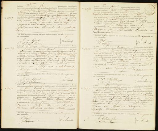 van beroep kleermaker wonende als boven. in den ouderdom van negen en zestig Jaren.- geboren alhier Weduwnaar Van Amerentia Hendrika van Nimwegen. En hebben wij hiervan opgemaakt deze Akte, welke na voorlezing door de aangevers en ons is onderteekend. I Spaan Van Lennep F Spaan No. 4869 Op heden Tien Juni Achttienhonderd Vier-en-Tachtig zijn voor ons ondergeteekende Ambtenaar van den Burgerlijken Stagd der Gemeente Amsterdam, verschenen: Jacobus van Goot. van beroep Aanspreker oud achtenvyftig Jaren, wonende Korsjespoortsteeg 20- bekende van de Overledene, en Petrus Jacobus Dolman van beroep aanspreker oud zesentwintig Jaren, wonende noorderstraat 35 bekende van de Overledene, welke hebben verklaard, dat op acht dezer des na „ middags ten negen ure, in het huis, staande brinsengrocht Kanton 2 No. 698, is overleden Nicolaas Johannes Schrever- van beroep — geen. wonende als boven in den ouderdom van twee dagen geboren alhier. zoon Van Franciscus Schrever, en Neeltje Bijl. En hebben wij hiervan opgemaakt deze Akte, welke na voorlezing door de aangevers en ons is onderteekend. J van Gool Van benns .PJ. Dolman. 72 No. 4878 Op heden Tien Juni Achttienhonderd Vieren-Tachtig zijn voor ons ondergeteekende Ambtenaar van den Burgerlijken Stand der Gemeente Amsterdam, verschenen: Carolus Cornelis ten Haagen van beroep tanspreker oud zesendertig Jaren, wonende Anjeliersstraat 54- bekende van de Overledene, en zijlke Jijleman van beroep aanspreker oud Eenenveertig Jaren, wonende Rozenstraat 184 bekende van de Overledene, welke hebben verklaard, dat op zeven dezer des na middags ten vier ure, in het huis, staande Sarphakestraat - Kanton 1- No. 104, is overleden Jan Roeger. van beroep geen wonende Bloemstraat 80 in den ouderdom vanacht maanden geboren alhier. zoon van Gerritje Ploeger- En hebben wij hiervan opgemaakt deze Akte, welke na voorlezing door de aangevers en ons is onderteekend. C C ten Haagen Van Lennek JH Tijleman No. 4871 Op heden" Tien Jani Achttienhonderd Vier-en-Tachtig zijn voor ons ondergeteekende Ambtenaar van den Burgerlijken Stand der Gemeente Amsterdam, verschenen: van beroep Jan Smit Aanspreker oud negenenveertig Jaren, wonende Keizersgracht 583 bekende van de Overledene, in Johannes Heijdeman, van beroep aanspreken, oud drieendertig Jaren, wonende Elandstraat 193. bekend van de Overledene, welke hebben verklaard, dat op Negen dezer des na middags ten een ure, in hedhuis, staande Saénredamstraat Kanton 2 No. 13-, is overleden Tuus Petrus Maria Meijs.- van beroep — geen wonende als boven, in den ouderdom van Veertien jaren geboren te 's Gravenhage zoon van Petrus Wijnandus Meijs, en Hortense Philotéé Caroline Behr: En hebben wij hiervan opgemaakt deze Akte, welke na voorlezing door de aangevers en ons is onderteekend. J Smit . Van Lernep J Heijdeman .. . . . . . . . 74 84.