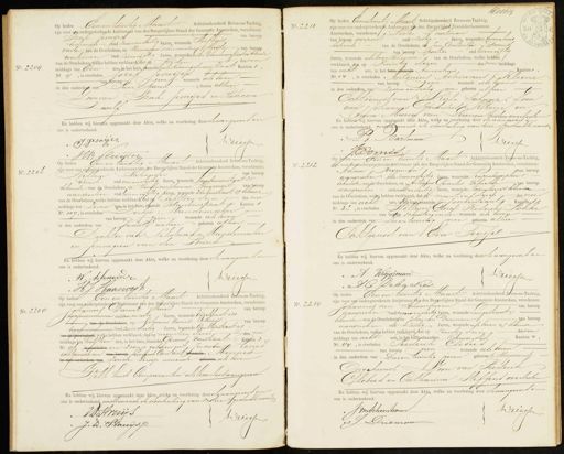 No. 2204 Op heden Een en twintig Maart Achttienhonderd Zeven-en-Tachtig zijn voor os ondergeteekende Ambtenaar van den Burgerlijken Stand der Gemeente Amsterdam, verschenen van beroep Izak Jesaijes bediende — oud zeven endertig Jaren, wonende Kerfhuis vader van de Overledene, en Hermanus Bernardus Suijter van beroep werkman oud zesenvijftig Jaren, wonende Eerste Rotendwarsstraat 14 bekende van de Overledene welke hebben verklaard, dat op Heden des voor middags ten Een ure, in het huis, staande late Koningdaarsstraat Kanton 1 No. 4, is overleden Jozef Jesaijes van beroep Heeen wonende als boven in den ouderdaa van Twee Jaren geboren alhier Zoon van Izak Jesaijes en Rebecca Zwalf En hebben wij hiervan opgemaakt deze Akte, welke na voorlezing door de aangevers en ons is onderteekend. J. JPayes Driessen No. 2210 Beidin Op heden Eenentwintig Maart Achttienhonderd Zeven-en-tachtig zijn voor ons ondergeteekende Ambtenaar van den Burgerlijken Stand der Gemeente Amsterdam, verschenen: Pieter Partman van beroep suppoor oud zestig Jaren, wonende Armenhuis bekende van de Overledene, en Jan ConstantijnDomif van beroep spoortier oud twee en vijftig Jaren, wonende als boven bekende van de Overledene, welke hebben, verklaard, dat op Twintig dezer des voor middag, ten acht ure, in het huis, saarde Armenhuis, Kanton 1 No. 14, is overleden Antonius Adrianus Rleene van beroep geen wonende als boven in den ouderdom van zeven en zestig jaren geboren alhier Echtgenoot van Rijke Schaap. Zoon van Johannes Gerardus Rleene en AAnna Maria van Leunen beiden overleden. En hebben wij hiervan opgemaakt déze Akte, welke na voorlezing door de aangevers en ous is onderteekend. goedkeurende de doorhaling van twee gedrukte woord Hartman Driessen No. 2206 Hek Geuyter Op heden Een en twintig Maart Achttienhonderd Eest- en-Tachtig zijn voor ons ondergeteekende Ambtenaar van den Burgerlijken Stand der Gemeente Amsterdam, verschenen: Willem Schneider van beroep Smid oud vier en dertig Jaren, wonende Haarlemmersraat 35 bekende van de Overledene, en Hendricus Johannes Haaserset, van beroep aanspreker oud twee en vijftig Jaren, wonende Vinkenstraat 27 bekende van de Overledene, welke hebben verklaard, dat opAchttien dezer des na middags ten zeven ure, in het huis, staande Blankenstraat Kanton 1 No. 109, is overleden Dirkje Mandemaker van beroepzeen wonende als boven in den ouderdom van Twaalf weken geboren alhier Dochter van Nikolaas Mandemaker en Jennegien van den Brink En hebben wij hiervan opgemaakt deze Aakte, welke na voorlezing door de aangevaken ons is onderteekend. W: Schneider Driessen H J: Haasevsetr No. 2212 J Domis S. Op hten Een en twintig Maart Achttienhonderd Zesenen-Tachtig Eif voor ons ondergeteekende Ambtenaar van den Burgerlijken Stand der Gemeente Amsterdam, verschenen: Adam Krigsman1 van beroep aanspreker ud zeven en dertig Jaren, wonende Rapenburgerplein 5 berende van de Overledene, en Antonius Gerardus Debacker van beroep aanspreker oud acht en dertigJaren, wonende Rapenburg 85 bekende van de Overledene, welke hebben verklaard, dat op negentien dezer des na middags ten acht ure, in het huis, staande Jonkerstraat Kants 10 No. 32, is overleden Willem, Carel Frederik Tokke van beroep schuitenvoerder wonende als boven in den ouderdom van zes en twintig jaren geboren alhier Echtgenoot van Eva Seyssel En hebben wij hiervan opgemaakt deze Akte, welke na voorlezing door de aangevers en ons is onderteekend. A: Krijysman Driessen A.G. Debgcsher No. 2208 Op heden Een en twintig Maart Achttienhonderd zeten-en-Tachtig, zijn voor ons ondergeteekende Ambtenaar van den Burgerlijken Stand der Gemeente Amsterdam, verschenen: Johannes Daniel Struijs van beroep begrafenis ondernemer oud vier enzestig Jaren, wonende Vijzelstraat 121 van de Overledene, en Johannes Daniel Atruijs van beroep begrafenis ondernemer oud zes en dertig- Jaren, wonende Quellijnstraat 49 ade Overledene welke hebben verklaard, dat op negentien dezer, des na middags ten halftien ure, in het huis, staande Gerard, Doustraat Kanton 2„ No. 90,, severleden een zoon is geboren uit, Jacoba, Renes echtgenoote van van beroep zeonard Constant wonende Mennes in den orderden van zonder beroep wonende geboren als boven Helk rand Comparaenten als tevenlons aangeren En hebben wij hiervan opgemaakt deze Akte, welke na voorlezing door de aangeverd en ons is onderteekend goedkeurende de doorhaling van Zestien gedrukte woorden JD Struijs Driessen J. D. Struijs. Jr No. 2214 Op heden Een en twintig Maart Achttienhonderd Aren-en-Tachtig, zijn voor ops ondergeteekende Ambtenaar van den Burgerlijken Stand der Gemeente Amsterdam, verschenen: Johannes van Schoonpoven van beroep aanspreker oud negen en dertig Jaren, wonende Langestraat 17 bekende van de Overledene, en Johannes Drieman van beroep aanspreker oud zestig Jaren, wonende als boven 47 bekende van de Overledene, welke hebben verklaard, dat op Twintig dezer des voor middags ten acht ure, in het huis, staande Niewendijk Kanton 4. No. 84, is overleden Frederik Clobus van beroep geen wonende als boven in den ouderdom van Drieentwintig jaren geboren te Hoogerand. Ongehuwd Zoon van Frederik Globus en Catharina Steffens overleden En hebben wij hiervan opgemaakt deze Akle, welke na voorlezing door de aangevers en ons is onderteekend. Jom Schoontronm Driessen J Drieman