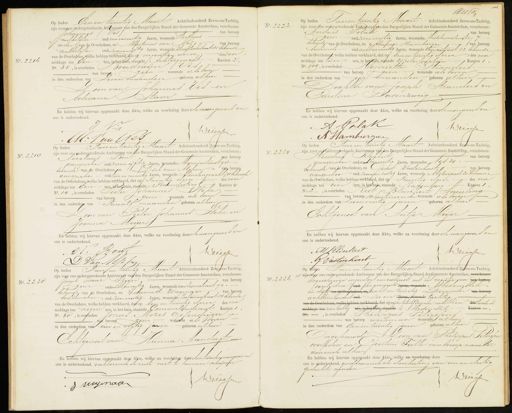 No. 35, is overleden Boudewijn Eis van beroep geen wonende als boven. in den ouderdom van Teven maanden geboren alhier oon van Johannes Vis en Adriana stam En hebben wij hiervan opgemaakt deze Akte, welke na voorleiing door de aangevers en ons is onderteekend. Vir Driessen M: Van Wes No. 2222 186 e Op heden Tweeen twintig Jaarl Achttienhonderd Zeven-en-Tachtig, zijn voor ons ondergeteekende Ambtenaar van den Burgerlijken Stand der Gemeente Amsterdam, verschenen: Andries Solak van beroep geen oud zesen veertig Jaren, wonende Moddermolenteeg bekende van de Overledene, en Abraham Hamburger van beroep bediende oud acht enveertig Jaren, wonende Verwerstraat 22 bekende van de Overledene, welke hebben verklaard, dat op Een en twintig dezer des voor middags ten twee ure, in hethuls, staande Waterloopleijn Kanton 1 No. 109, iss overleden Henriette Giranders. van beroep geen, wonende als boven in den ouderdom van vijf maanden geboren alhier Dochter van Joseph Stranders en Parolina Plosenzweig En hebben wij hiervan opgemaakt deze Akte, welke na voorlezing door de aangevert en ons is onderteekend. A Polak Driessen A Hamburgeen No. 2218 Op heden Twee en twintig Maart Achttienhonderd Zesen-en-Tachtig, zijn voor ons andergeteekende Ambtenaar van den Burgerlijken Stand der Gemeente Amsterdam, verschenen: Ficolaas Bont, van beroep aanspreker oud zes en vijftig Jaren, wonende Marnissraat 98.— bekende van de Overledene, en Dirk van Alphen van beroep aanspreker oud wee en zeventig Jaren, wonende Zindengracht 78 bekende van de Overledene welke hebben verklaard, dat op Twintig dezer des voor middags ten Een ure, in het huis, staande Barndesteeg Kanton 4 No. 14, is overleden Pieter Johannes Heke, van beroep zeen wonende als boven. in den ouderdom van Twaalf maanden geboren alhier zoon van Pieter Johannes Weke en Joanna Meijer Ef hebben wij hiervan opgemaakt deze Akte, welke na voorlezing door de aangeveid en ons is onderteekend. A. Bont Driessen D Van AlhIn No. 2224 Op heden Twee en twintig Maart Achttienhonderd desen-en-Tachtig, zijn voor ons ondergeteekende Ambtenaar van den Burgerlijken Stand der Gemeente Amsterdam, verschenen: Hendrik Klinkert, van beroep aanspreker oud achtenveertig Jaren, wonende ses 84 bekende van de Overledene, en Gerrit Vastenhout van beroep aanspieker oud zevenen zestig Jaren, wonende Molenpad 2o bekende van de Overledene, welke hebben verklaard, dat op Twintig deeer des na middags ten vier ure, in het huis, staande Rapenburg Kanton 1, No 2, is overleden Rut Blan,eert Smuling van beroep schuitenvoer der wonende als boven in den ouderdom van zes en veertig jaren geboren alhier Echtgenoot van Intje Meijer En hebben wij hiervan opgemaakt deze Akte, welke na voorlezing door de aangevers en ons is onderteekend. M CElinkert Driesler G Vastenhout Op heden Twee en twintig Maart Achttienhonderd zevenen-Tachtig, zijn voor ons ondergeteekende Ambtenaar van den Burgerlijken Stand der Gemeente Amsterdam, verschenen: Joseph Isaac Speijer, van beroep Teen oud achtenviftig Jaren, wonende vontesenstraat 74.— bekende van de Overledene, en Samuel Wagenaar van beroep borkelmaker oud zesenveertig Jaren, wonende Natavierstraat 56 bekende van de Overledene, welke hebben verklaard, dat op Een en twintig dezer, des na middags ten negen ure, in het huis, staande Commelijnstraat Kanton 1 No. 30, is overleden Jonas Mozes Ossendrijver van beroep geen wonende als boven in den ouderdom van vier en vijftig jaren geboren alhier Echtsennt van Nanna Aandag En hetben wij hiervan opgemaakt dere Alte, welke na voorling deor den tweeden aangever en ons is onderteekend. verklarende de eerste niet te kunnen schrijven Driessen Juienaa No. 2226 Op Heden Twee en twintig Maart Achttienhonderd Zeten-en-Tachtig, is zijn ooor ons ondergeteekende Ambtenaar van den Burgerlijken Stand der Gemeente Amsterdam, versche Ingeschreven ingevolge een extract uit het register van van beroep overlijden oud der gemeente Jaren, wonende Medembtik En agto van de Overledene en acht en twintig December van bere achttienhonderd ond zes en Jaren, wonende tachtig van de Overledene, welke habken verklaard, dat op vij en twnntig December achttien des honderd middags ten zesen tachtig ure, in det huis, staande te Medemblik Kanton -, Na., is overleden Philippus Peiersten van beroep werkman wonende alhier in den ouderdom van Een en twintig jaren geboren alhier Ongehuwd zoon van Philippus Setersen overleden en Geertrui Tulle van beroep naaister, wonende alhier, En hebben wij hiervan opgemaakt deze Akte, welke na voorlezing door ors is oudereekend goedkeurende de doorhaling van vier en dertig gedrukte woorden Drieen