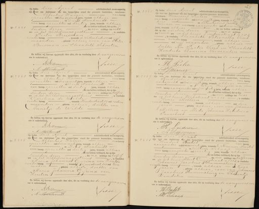 Albertus Hamer van beroep oprichter oud drie en veerti jaren, wonende alhier en Dirk Manhoudt van beroep opzichter oud dertig jaren, wonende alhier „die ons hebben verklaard, dat op den , des voor middags ten Kalf zes derden dezer ure in het Wilhelmina gasthuis , is overleden 1 Carolina de Wilde zonder beroep, wonende Noorderstraat 85 oud zestien maanden, geboren alhier, dochter van Annetje de Wilde En hebben wij hiervan opgemaakt deze akte, die na voorlezing door de aangevers en ons is onderteekend. schol A Hame D. Manhoudt No. 2449 Op heden drie April achttienhonderd zes-en-negentig zijn voor ons Ambtenaar Jan den burgerlijken stand der gemeente Amsterdam, verschenen Rudolphus Leidner van beroep 7 aanspreker oud twee en vijftig Jaren, wonende alhier en Rijn Huissman van beroep aanspreker oud vif en zestig jaren, wonende alhier „ , die ons hebben verklaard, dat op den tweeden dezer des voor middags ten twee ure in het huis Kerkstraat no 231 , is overleden Henri Mollien zonder beroep ,wonende alhier oud drie jaren— , geboren alhier zoon van Johannes Mollien en Alida Johanna Hendrica Pannekoek En hebben wij hiervan opgemaakt deze akte, die na voorlezing door de aangevers en ons is onderteekend. „ IE. Leidrer schoe 1 P: Huysman Op heden drie April achttienhonderd zes-en-negentig zijn (voor ons Ambtenaar van den burgerlijken stand der gemeente Amsterdam, verschenen van beroep Albertus Hamer oprichter oud drie en veertig jaren, wonende alhier en Dirk Manhoudt van beroep opzechter oud dertig jaren, wonende alhier , die ons hebben verklaard, dat op den tweeden dezer, des na middags ten half elf ure in het Wilhelminagasthuis 4, is overleden Maria Johanna Cyzina van Houten zonder beroep wonende Spuistraat 301 oud tien weken „geboren alhier, dochter van C Maria Johanna Gijzina van Houten Alede dam geud de dg den veolug der de aangevergen ons is onderteekend. AHAmu schot D. Mantroudt No. 2451 Op heden drie April achtienhonderd zesennegentig zijn voor ons Ambtenaar van den burgerlijken stand der gemeente Amsterdam, verschenen: Hendrik Buto van beroep 1 aanspreker oud een enveertig jaren, wonende te Nieuwer Amatel en Willem Schaap van beroep aandreker oud veertig jaren, wonende alhier „die ons hebben verklaard, dat op den tweeden dezer ,des voor middags ten halfzeven 1 ure in fet huis Albert Cuypstraat n:o 217, is overleden Johannes Jacobus Hummelin zonder beroep wonende alhier