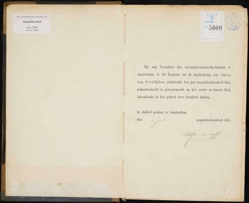 Stadsarchief Amsterdam, archieftoegang 5009, Archief van de Burgerlijke stand, inventarisnummer 3933, Overlijdens, Akten, Registers van overlijdensakten, 1903, deel 6