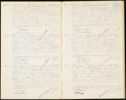 , die ons hebben verklaard, dat op den zevenden dezer, des na middags ten drie „ ure Leida Berendina Kloosterziel afhier is overleden zonder beroep, echtgenoote van Hendrik Seeger van beroep wedeman, wonende der de Oosterparkstraat 128 alhier oud te diens huize is, geboren bevallen van eenkind, dat zij als levenloos aangeven En hebben wij hiervan opgemaakt deze akte, die na voorlezing door de aangeversen ons is onderteekend. Goedgekeurd de doorhaling van vijf ge¬ druktesoorden W Mee W. R. Berg No 1204 Heden tien Februari negentienhonderd vier, zijn voor ons Ambtenaar van den burgerlijken standder gemeente Amsterdam, verschenen: Johan Boomers van beroep aanspreker oud dertig jaren, wonende alhier en Alexander Terstall van beroep aanspreker oud eenendertig jaren, wonende alhier ,die ons hebben verklaard, dat op den negenden dezer, des voor middags ten drie ure inhethuis AlbertCuypstraat 72 ahier is overleden Overdina Johanna van den Born BBalhier van beroepgeen, wonende Irinsengracht 7 oud alstienmaanden, geboren alhier, dochter van Antonia Ottalina van den Born dienst bode wonende alhier En hebben wij hiervan opgemaakt deze akte, die na voorlezing door de aanzeversen ons is onderteekend. vv J Boomers A. Serstall No. 1200 Heden Tien Februari negentienhonderd vier„ zijn voor ons Ambtenaar van den burgerlijken stand der /gemeente Amsterdam, verschenen: Jan Smit van beroep aanspreker oud negenenzestijaren, wonnde alhier en Willem de Beus van beroep aanpreker oud negenenzestig jaren, wonende alhier. , die ons hebben verklaard, dat op den negenden dezer, des voor middags halfvier ure Inhechuis Overtoom 328 ahier is overleden Eduard Philippus Johannes Geluk van beroep geen, wonende zlhier oud vijftig jaren geboren te Batavia; zoon van duard Geluk, en Cornelia van Deventer.- En hebben wij hiervan opgemaakt deze akte, die na voorlezing door de aangevers en ons is onderteekend. 7 J Smit W de Beus No 1206 Heden tien Februari negentienhonderd dier, zijn voor ons Ambtenaar van den burgerlijken stand (der gemeente Amsterdam, verschenen: Herman Ostendort van beroep aanspreker oud achtentwintig jaren, wonende alhier en Hendrikus Ostendarf van beroep aansproker oud achtenzestig jaren, wonende alhier ,die ons hebben verklaard, dat op den