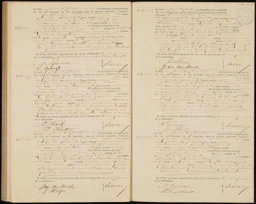 No. 6547 Op heden vyftien September achttienhonderd zeven-en-negentig, zijn voor ons Ambtenaar van den burgerlijken stand der gemeente Amsterdam, verschenen: Jan Marks van beroep oprichter oud zevenen derti jaren, wonende alhier en Jan van der Leed van beroep oprichter oud twee en dertig jaren, wonende alhier „ die ons hebben verklaard, dat op den veertienden dezer, des na middags ten half twaalf wegen het Binnengaalhuis, is overleden Anna Visscher zonder beroep, wonende Jacob van Campenshaat 67 oud acht en veertig jaren, geboren te zype, weduwe van Jan Spaans, dochter van Lammert Sa Oisscher overleden en Hermina van Sinderen En hebben wij hiervan opgemaakt deze akte, die na voorlezing door de aangeveis en ons is onderteekend, goedgekeurd de doorleelen, van drie letters in deze akte J: Marin. sctol No. 6553 147 Op heden vyftien September achttienhonderd zeven-en-negentig, zijn voor ons Ambtenaar van den burgerlijken stand der gemeente Amsterdam, verschenen: Cornelis van Hees van beroep aanspreker oud vijfenveertig jaren, wonende alhier en Jacobus van der Aloolen van beroep aanspreker oud zeven en dertig van jaren, wonende alhier, die ons hebben verklaard, dat op den dertienden dezer des voor middags ten half twaalfure in het huis Dirk Harloakstraat 17 „ is overleden Christiaan Mol van beroep werkman, wonende alhier oud zestig jaren geboren alhier weduwnaar van Alijda Petronella Rumph echigenool van Sara Oostmeijer, zoon van Pieter Mol en Kaatje Westerdaal, beiden overleden En hebben wij hiervan opgemaakt deze akte, die na voorlezing door de aangevers in ons is onderteekend. E D Sees schie J. van der Ooelen No. 6549 A of schrigt Op heden vyftign September achttienhonderd zeven-ennegentig, zijn voor ons Ambtenaar van den burgerlijken stand der gemeente Amsterdam, verschenen: Jan Kost van beroep aanspreker oud acht en zeventig Jaren, wonende alhier en Jacob Kost van beroep schilder oud een en vijftig jaren, wonende alhier „die ons hebben verklaard, dat op den dertienden dezer, des voor middags ten tien urein het huis Kerkstraat, 212, is overleden Albertus Hendrik Jansen zonder beroep, wonende alhier oud twee en tachtig jaren, geboren alhier, weduwnaar eerst van CAnna Bolhuis, daarna van Akke Plantinus zoon van Heyme Jansen en Johanna Elisabeth Muller, beiden overleden En hebben wij hiervan opgemaakt deze akte, die na voorlezing door de aangevers in ons is onderteekend. J: Kost Schil J. Kvet. No 6555 Op deden vyftien September achttienhonderd zeven-en-negentig, zijn voor ons Ambtenaar van den burgerlijken stand der gemeente Amsterdam, verschenen Hendricus Piege van beroep aanspreker oud zeven en dertig jaren, wonende alheer en Cornelis van Hees van beroep aanspreker oud vijf en veertig jaren, wonende alhier „ die ons hebben verklaard, dat op den veertienden dezer, des voor middags ten zeven ure in het huis Tollensstraat 70 is overleden. Regina Theodora van de Pitte onder beroep, wonende alhier oud negen maanden geboren alhier, dochter van Theodorus van de Putte en Alberta Hulsebos En hebben wij hiervan opgemaakt deze akte, die na voorlezing door de aangevers in ons is onderteekend. Preg sctie C vHeels No. 6551 Op heden vijftien September achttienhonderd zeven-ennegentig, zijn voor ons Ambtenaar van den burgerlijken stand der gemeente Amsterdam, verschenen: Jacobus van der Hoolen van beroep aanspieker oud zeven en dertig jaren, wonende alhier en Johannes Mlessie van beroep aanspreler oud drie en zeventig jaren, wonende alhier „ die ons hebben verklaard, dat op den veertienden dezer, des voor middags ten dri ure, in het huis Albert Cuypotraal 144, is overleden Andreus Godenrius Arnoldus Maria Voordouw zonder beroep, wonende alhier oud zeven weken, geboren alhier, zoon van Jacobus Philippus Voordouw en Catharina Haria Johanna Faas En hebben wij hiervan opgemaakt deze akte, die na voorlezing door de aangevers en ons is onderteekend. schie J van der Maalen J Alessie No. 6557 Op heden vyftien September achttienhonderd zevenennegentig zijn voor ong Ambtenaar van den burgerlijken stand der gemeente Amsterdam, verschenen Johannes Servaas van beroep aanspreker oud vijf en zeventig Jaren, wonende alhier. en Dirk Engelbrecht van beroep aan yneker oud drie en dertig jaren, wonende alhier „ die ons hebben verklaard, dat op den twaalfden dezer, des na middags ten twee ure op de de Ruyterkade, is overleden bevonden Johannes Huising zonder beroep, wonende Koningstraat 46 oud acht jaren, geboren alhier, zoon van Cornelis Hendricus Johannes Hueying en Johanna Eisman En hebben wij hiervan opgemaakt deze akte, die na voorlezing door de aangevers ons is onderteekend. I Serraus schie E Engebbreekt