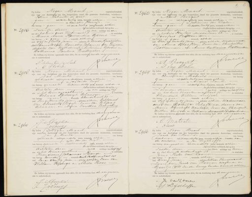 No. 2456 Op heden Negen Maart negentienhonderd, zijn voor ons Ambtendar van den burgerlijken stand der gemeente Amsterdam, verschenen: Petrus Schouten de waal van beroep geen. oud zes en zestig jaren, wonende alhier. en Cornelis Florisse. van beroep geen oud een en zestig jaren wonende alhier Zevenden dezer. if ons hebben verklaard, dat op den „des na middags ten een ure in het huis oude Turfmarkt J., is overleden Maria Anna Fernandina Govers. van beroep, geen, wonende alhier oud vyf en zestig jaren-, geboren te Breda, Gescheiden echtgenoote van Cornelis Johannes Jan Luijnen dochter van Wilhelmus Antonius Govers en Catharina Paulina Rathgeber. En hebben wij hiervan opgemaakt deze akte, die na voorlezing door de aangeveisen ons is onderteekend. Iunle P. Betrouten ge Haal C. F:lorisse. No. 2462 Op heden Negen Maart negentienhonderd, zijn voor ons Ambtenaar van den burgerlijken stand der gemeente Amsterdam, verschenen: Aart Boogert van beroep Geen oud negen en zestig Jaren, wonende alhier. en Johannes van Dalen.- van beroep - geen oud acht en zestig jaren, wonende alhier „die ons hebben verklaard, dat op den Achtsten dezer, des voor middags ten zes ure in het huis Plantage Middenlaan 52.—, is overleden Jozefus Botterman. van beroep geen, wonende alhier oud vier en zeventig jaren.-, geboren alhier, weduw naar van Anna Wessler, zoon van Hubertus Botterman, en Anna Catharina Botterman En hebben wij hiervan opgemaakt deze akte, die na voorlezing door de aangevers en ons is onderteekend. Asahele A VHoogert I Van Dalen No. 2458 No. 2460 Op heden Negen Maart negentienhonderd zijn voor ons Ambténaar van den burgerlijken stand der gemeente Amsterdam, verschenen Jan Markx van beroep opzichter oud negen en dertig jaren, wonende alhier. — en Jan van der Lugt van beroep opzichter oud vieren dertig jaren, wonende alhier.- —, die ons hebben verklaard, dat op den Achtsten dezer, des na middags ten vijf ure in het Binnengasthuis E Klaas Lodewijk Klaasen.— is overleden van beroep geeen, wonende Elandstraat 79 oud len en zeventig Jaren, geboren alhier. Echtgenoot van Elisabeth Rogh, zoon van Klaas Klaasen, en Anna Dorothea Beugeling En hebben wij hiervan opgemaakt deze akte, die na voorlezing door de aangevers en ons is onderteekend. Astbete J. Markr. Jv.Vuys No. 2464 Op heden Negen Maart negentienhonderd, zijn voor ons Ambtenaar van den burgerlijken stand der gemeente Amsterdam, verschenen: Christiaan Matveld van beroep geen. oud acht en zestig jaren, wonende alhier en August Lamle. — van beroep geen. oud achten zeventig jaren, wonende alhier ,die ons hebben verklaard, dat op den Levenden dezer, des na uiddags ten half zes ure in het huis Haarlem merstraat 75. is overleden Hendrik Willem Suijver van beroep - geen, wonende alhier, oud vijf enzeventig Jaren geboren alhier, Weduwnaar eerst van Gerritjen Schaftenaar, daarna van Maria Elisabeth Wouters, zoon van Hendrik Willem Suijver en Catharina Margaretha Dikkentman En hebben wij hiervan opgemaakt deze akte, die na voorlezing door de aangevers en ons is onderteekend. Innbete Matveld A Lamle Op heden Negen Maart negentienhonderd zijn voorons Ambtenaar van den burgerlijken stand der gemeente Amsterdam, verschenen Jan Marks van beroep op zichter oud negen en dertig jaren, wonende alhier. en Jan van der Lugt van beroep opzichter oud vier en dertig jaren, wonende alhier , die ons hebben verklaard, dat op den achtsten dezer, des na middags ten half vijf ure in het Binnengasthuis, is overleden Franciscus Johannes Ronge.— van beroep kruier., wonende eerste Helmerstraat 148 oud Een en Veertig Jaren, geboren alhier, zoon van Willem Ronge en Alida Roos- En hebben wij hiervan opgemaakt deze akte, die na voorlezing door de aangeveisen ons is onderteekend. Nebde J. Mlarks. J. J vVuis No. 2466 1 Op heden Negen Maart negentienhonderd, zijn voor ons Ambtehaar van den burgerlijken stand der gemeente Amsterdam, verschenen: Jacob van Zoonen van beroep werkman oud vierendertig jaren, wonende alhier, vader van den overledene. en Jan Dijkhoffz van beroep aansrek er 6ud een en dertig jaren, wonende alhier. , die ons hebben verklaard, dat op den zesden dezer. des voor middags ten zeven ure in het huis de Wittenkade 32., is overleden Jorus Pieter van Zoonen. van beroep geen., wonende alhier oud vier jaren, geboren te Heer Hugowaard zoon van Jacob van Zoonen Werkman. en Geertje Ott zonder beroep beiden wonende alhier En hebben wij hiervan opgemaakt deze akte, die na voorlezing door de aangevers en proete ons is onderteekend. J. van Zoonen. J Dijkhoffe